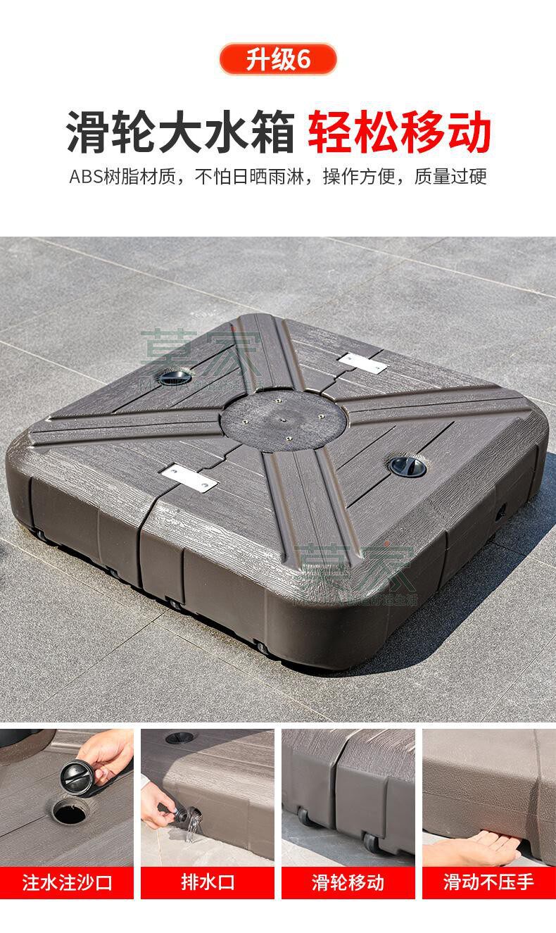 • 업그레이드된 금박 나뭇결 모델: 이중 붐 + 10CM 알루미늄 기둥 + 고급 바퀴 달린 물 탱크 베이스