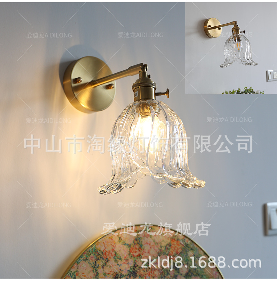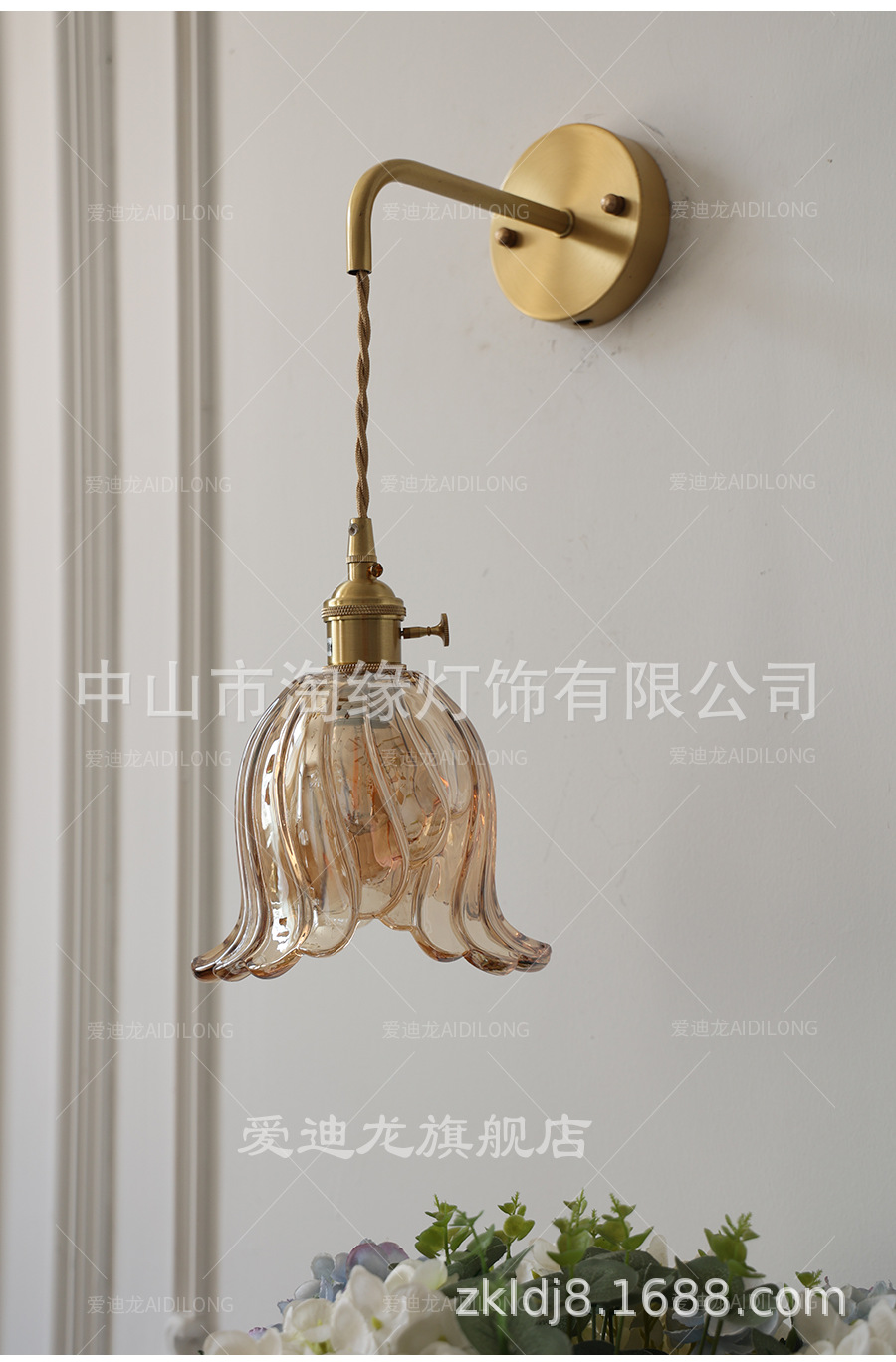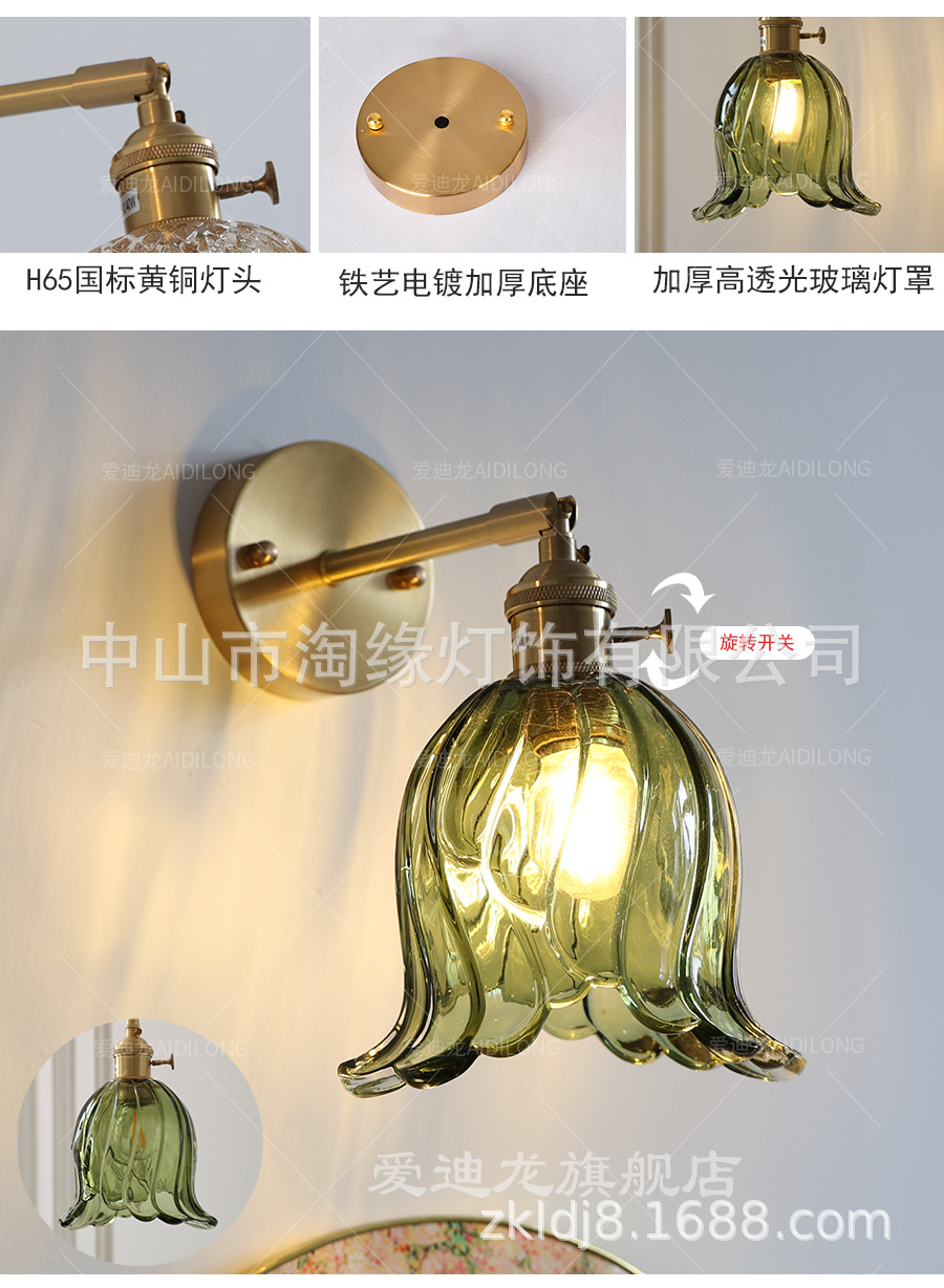 *材质:黄铜灯头。铁艺镀铜底盘(需要纯铜底盘加15元一个)。玻璃灯罩。