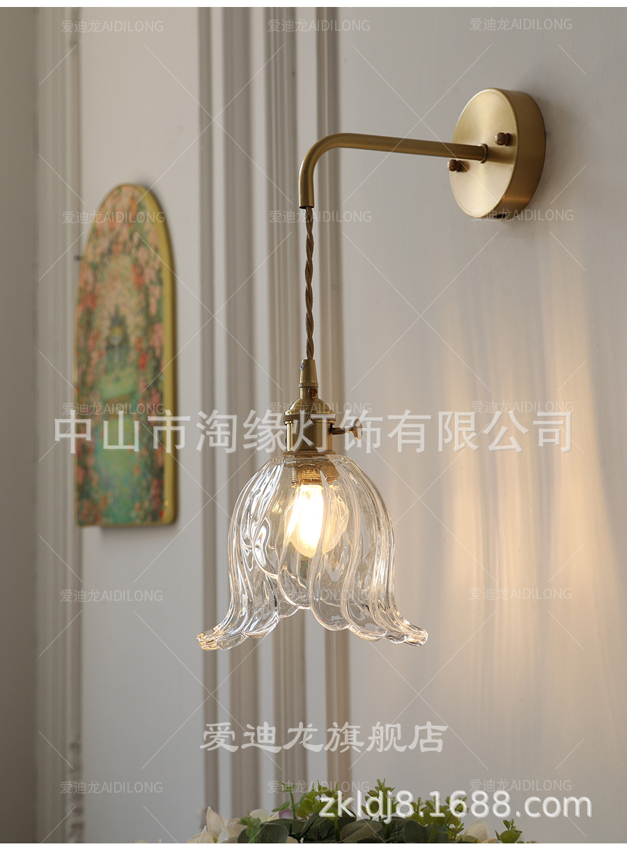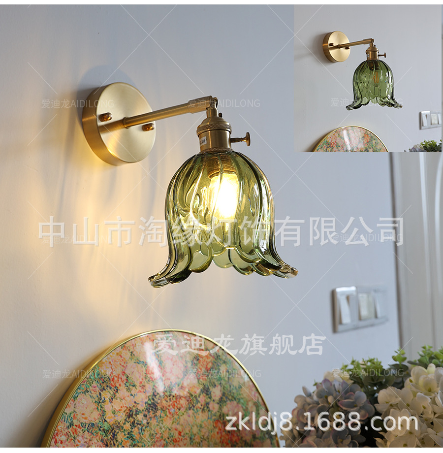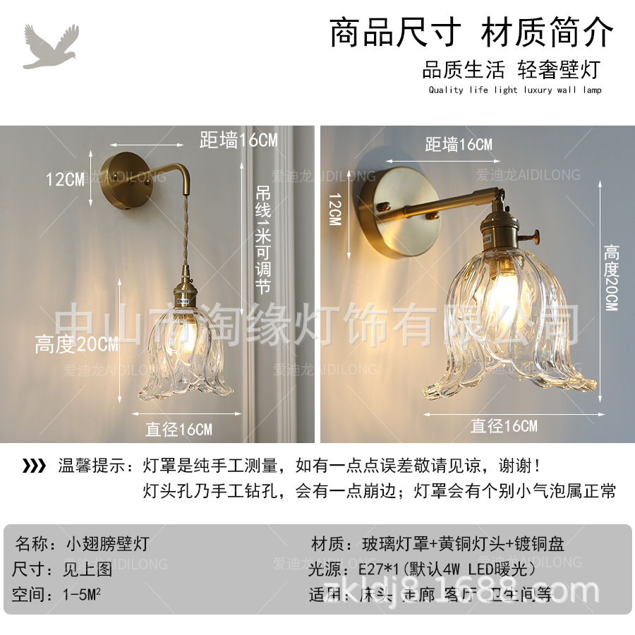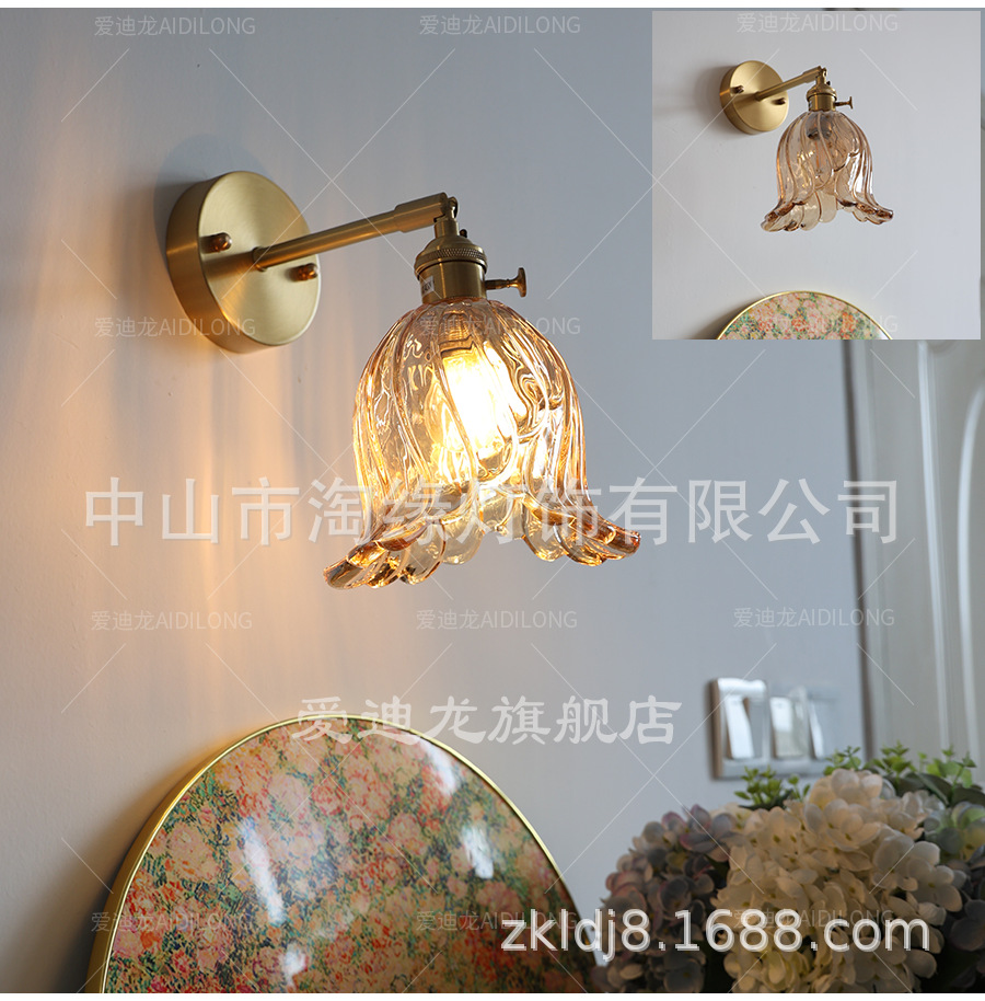 *材质:黄铜灯头。铁艺镀铜底盘(需要纯铜底盘加15元一个)。玻璃灯罩。