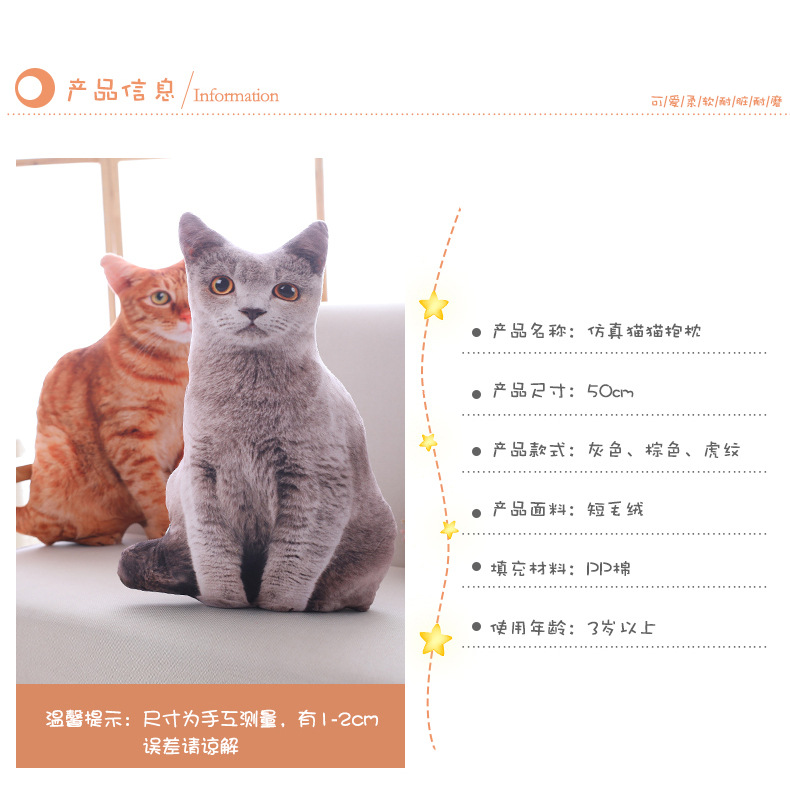 창조적 인 시뮬레이션 3D 입체 개 베개 새끼 고양이 봉제 장난감 인형 어린이 선물 생일 선물 인형스토어 가기