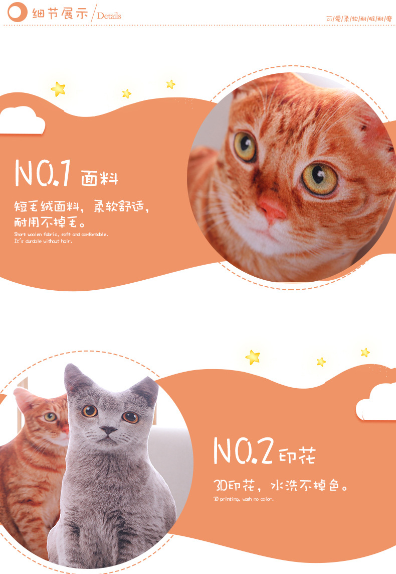 창조적 인 시뮬레이션 3D 입체 개 베개 새끼 고양이 봉제 장난감 인형 어린이 선물 생일 선물 인형