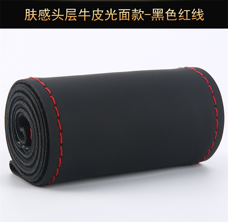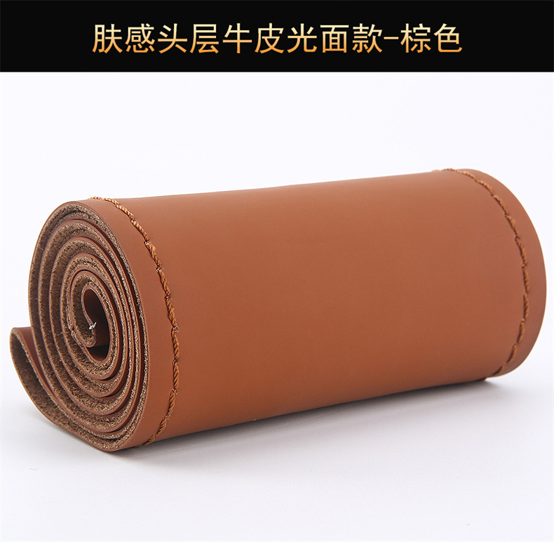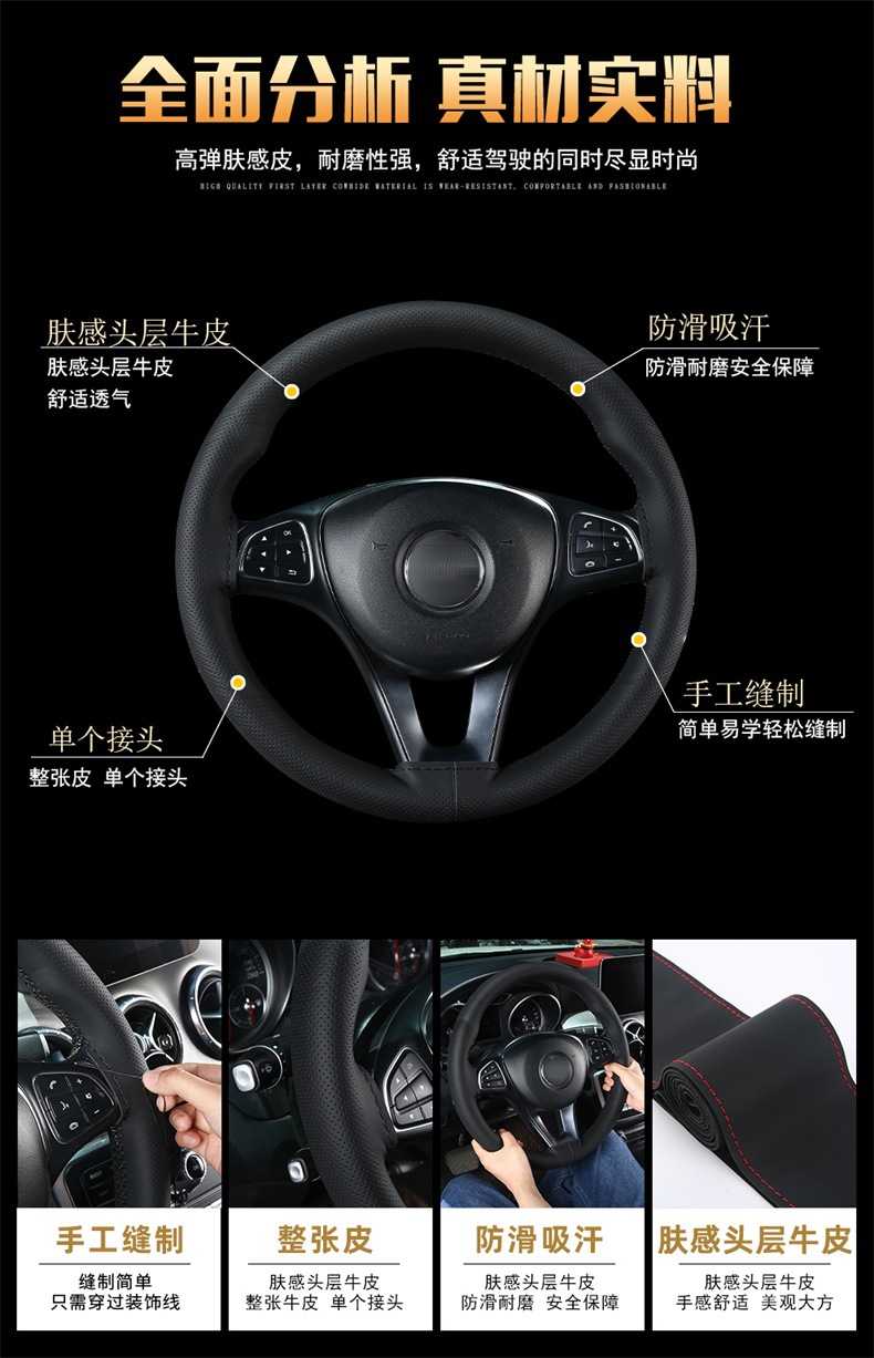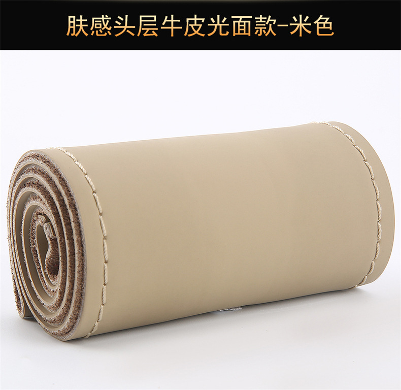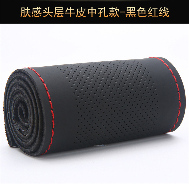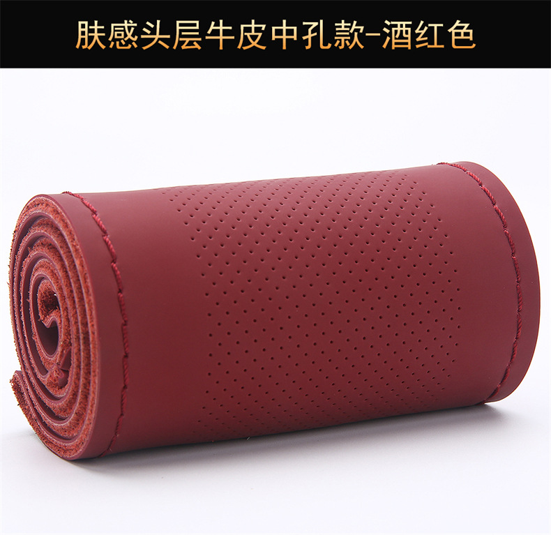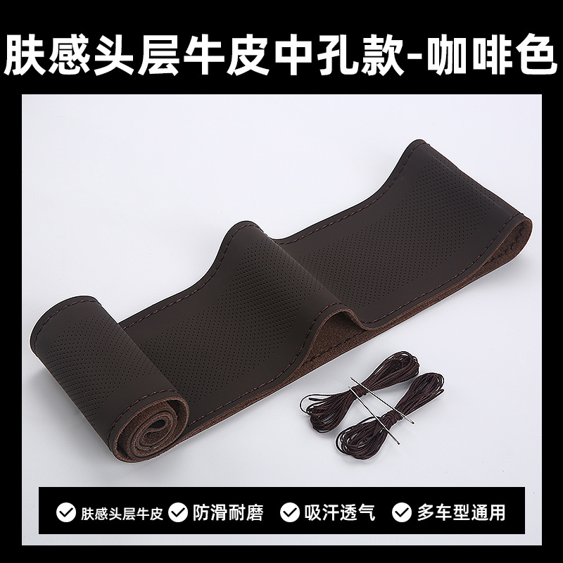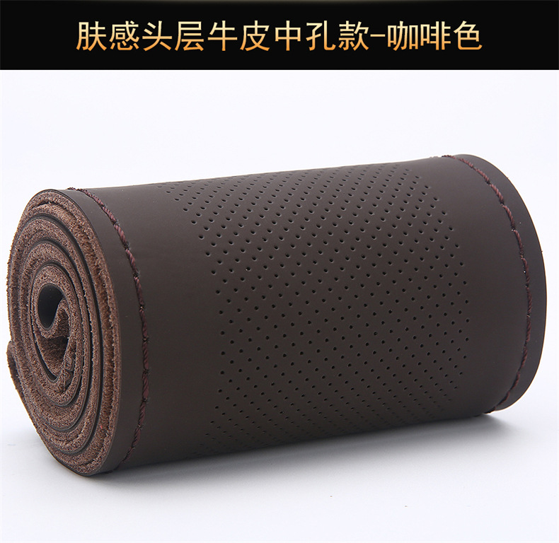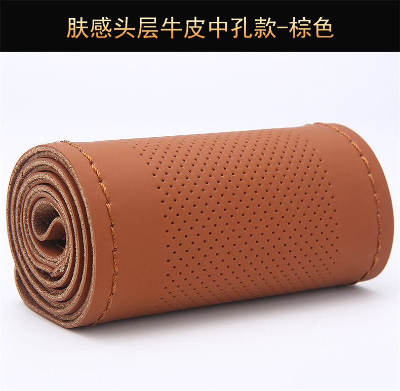 피부 느낌 상단 레이어 소 가죽 손으로 스티치 스티어링 휠 커버 사계절 유니버설 가죽 자동차 핸들 커버 새로운 가죽 커버
