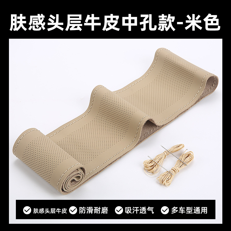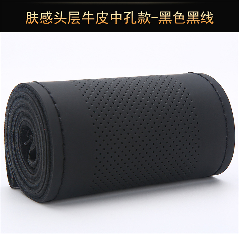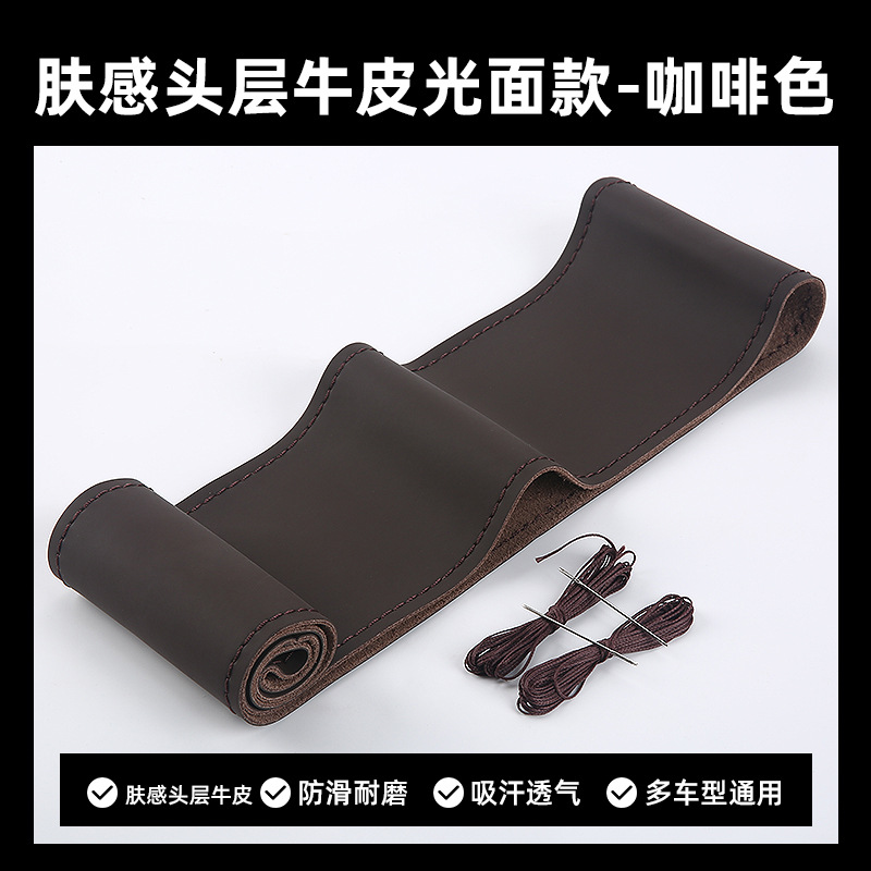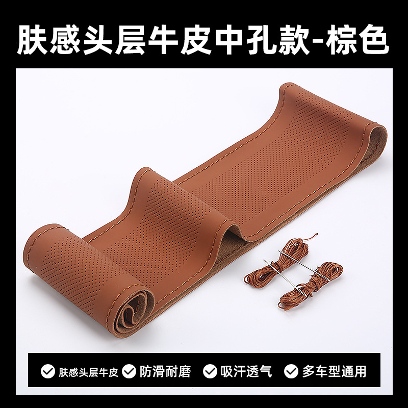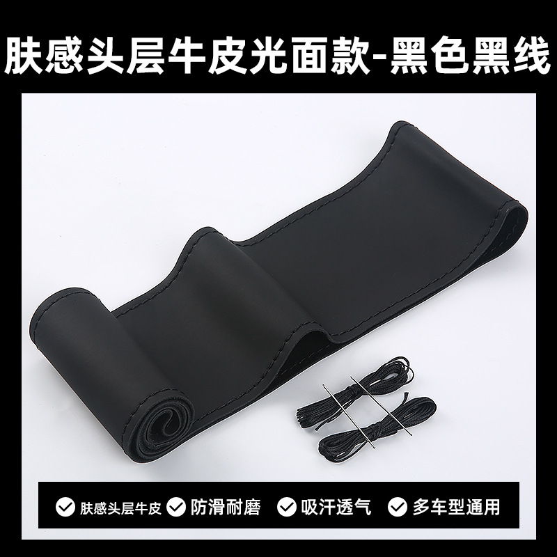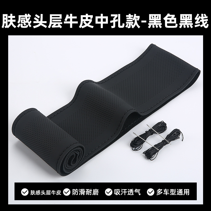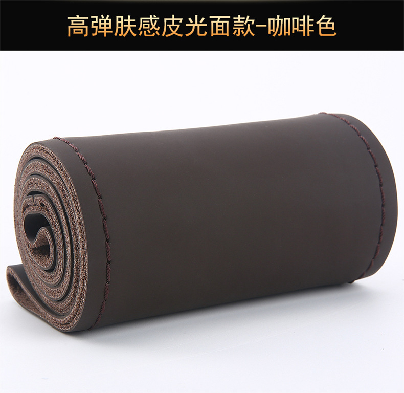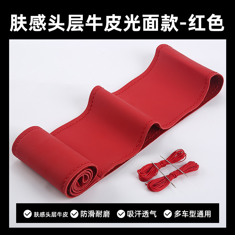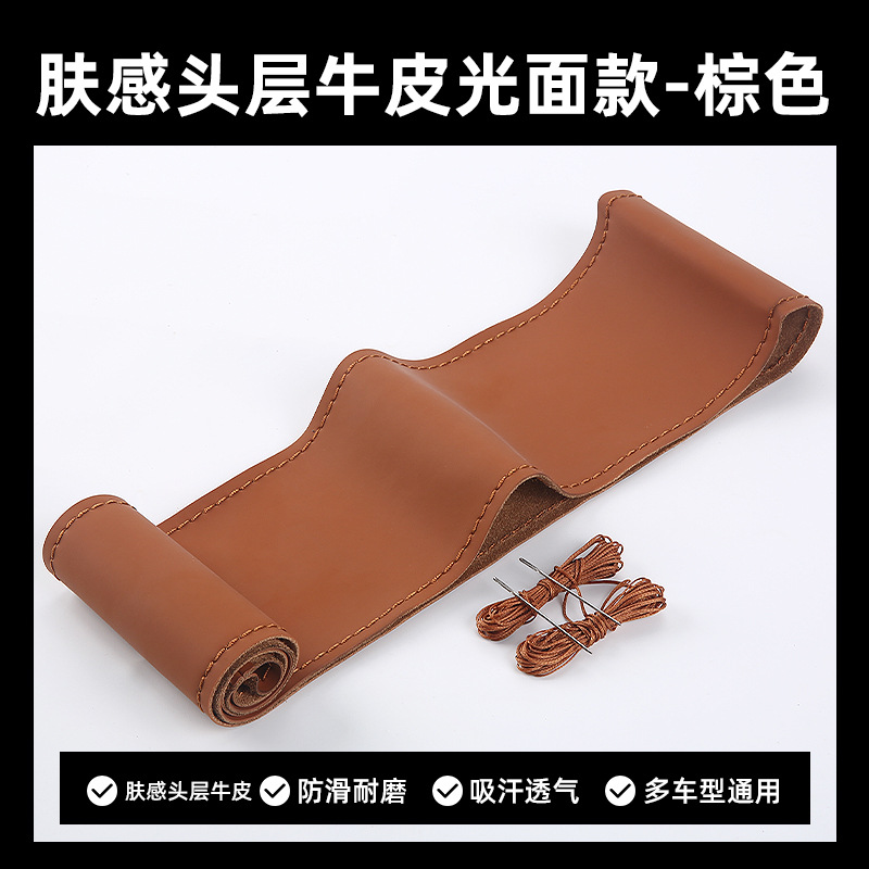 피부 느낌 상단 레이어 소 가죽 손으로 스티치 스티어링 휠 커버 사계절 유니버설 가죽 자동차 핸들 커버 새로운 가죽 커버