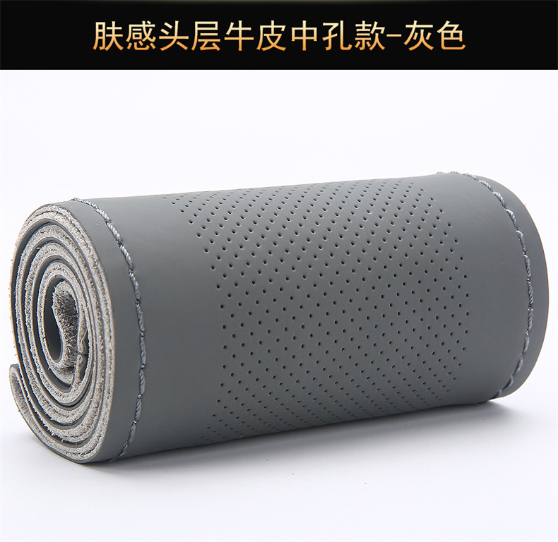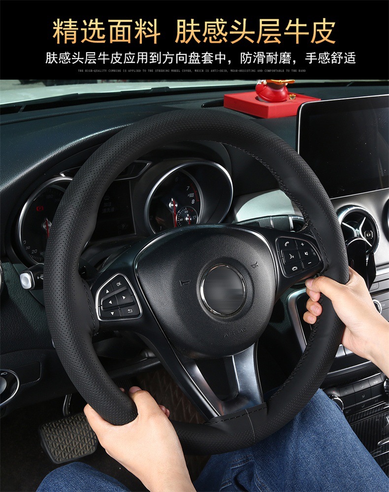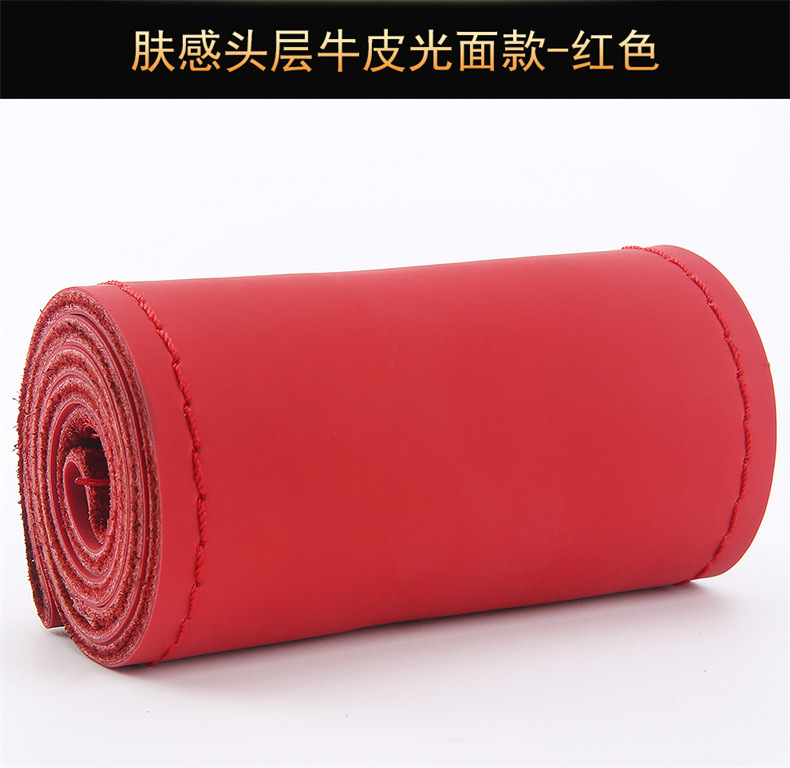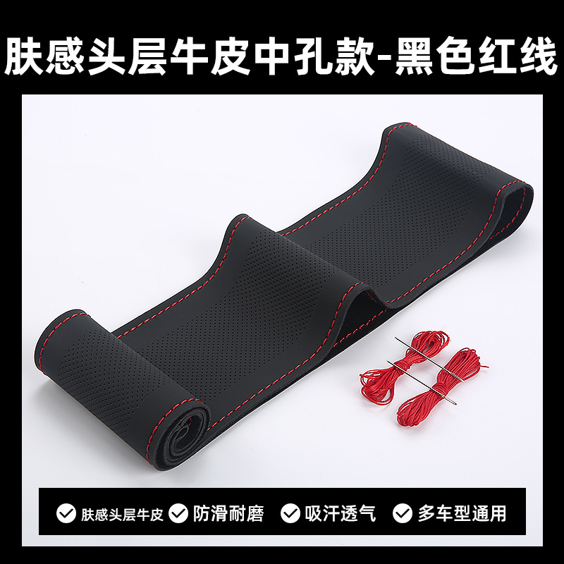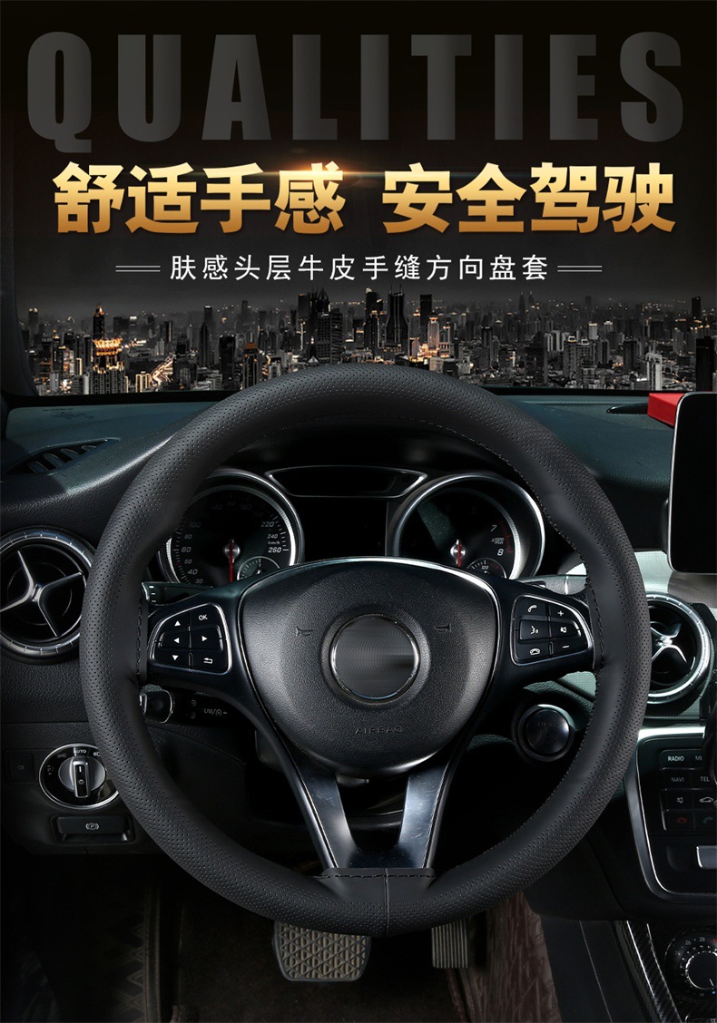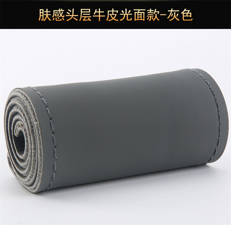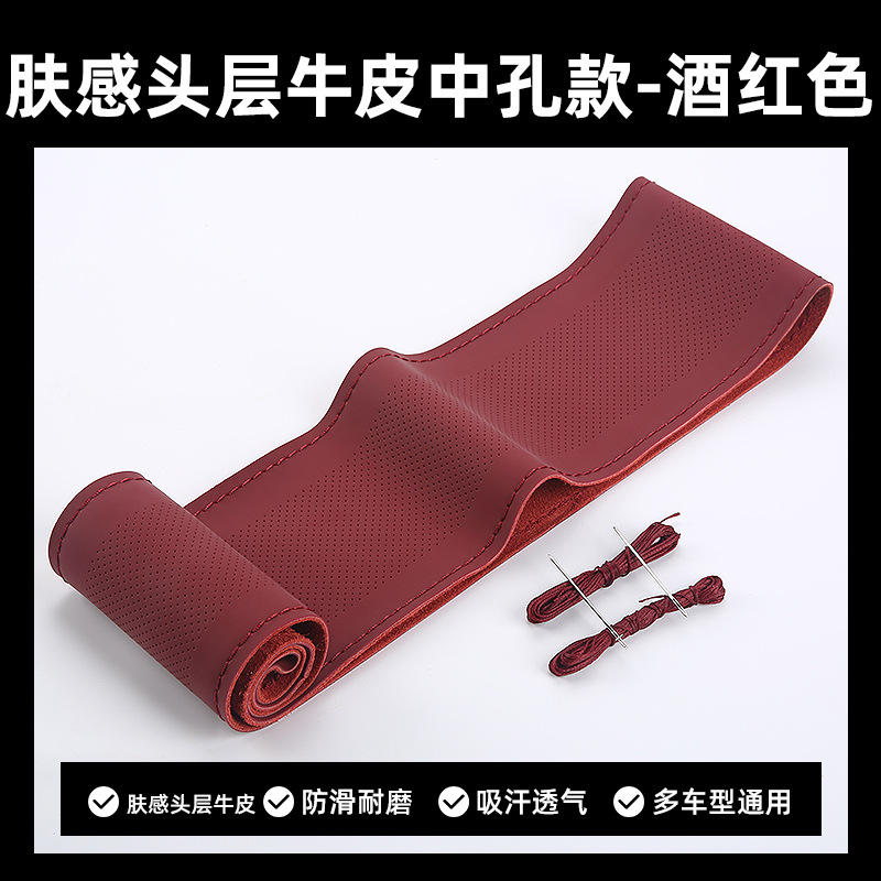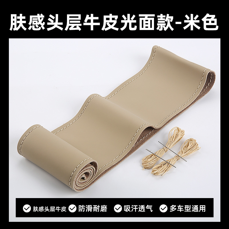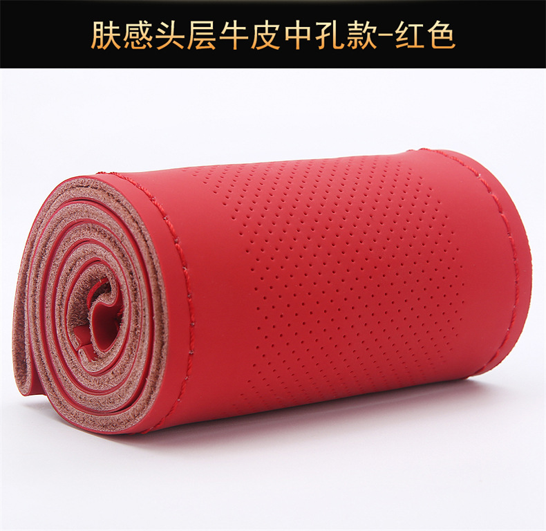 피부 느낌 상단 레이어 소 가죽 손으로 스티치 스티어링 휠 커버 사계절 유니버설 가죽 자동차 핸들 커버 새로운 가죽 커버