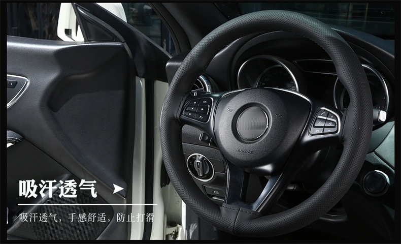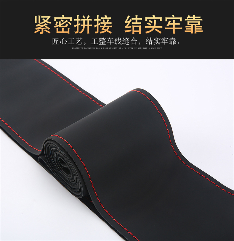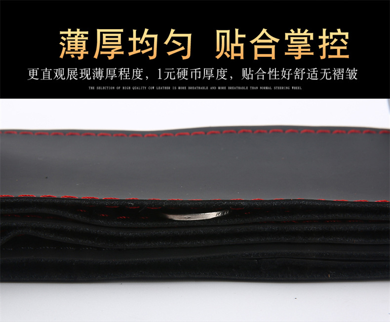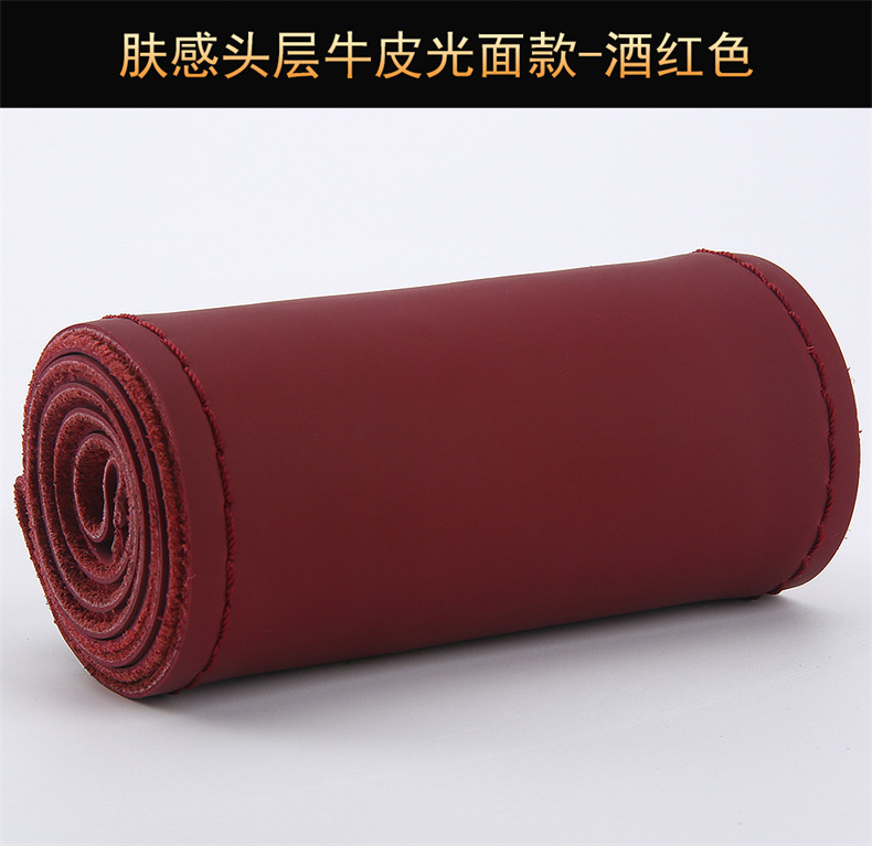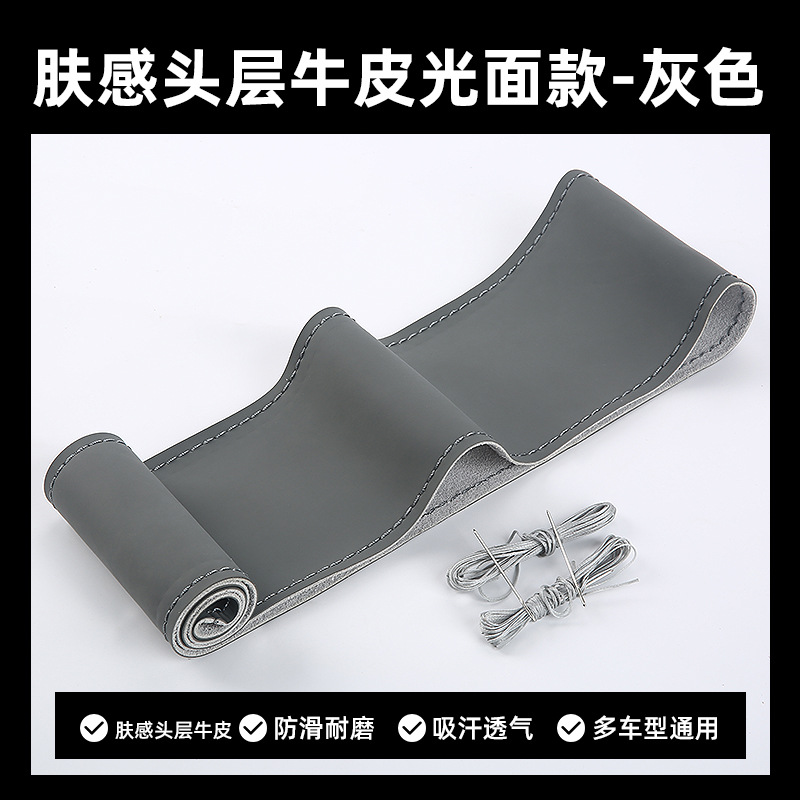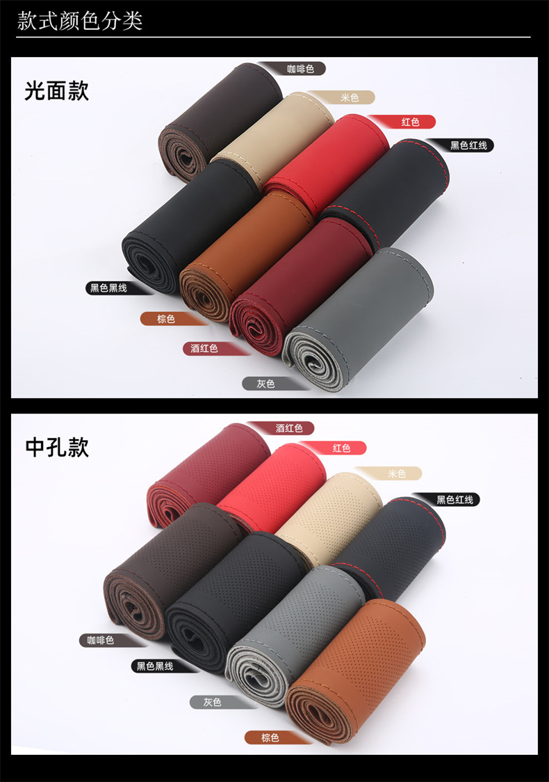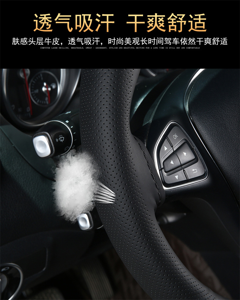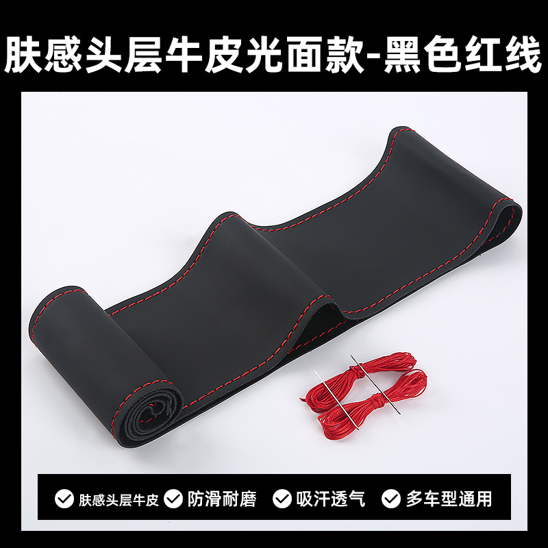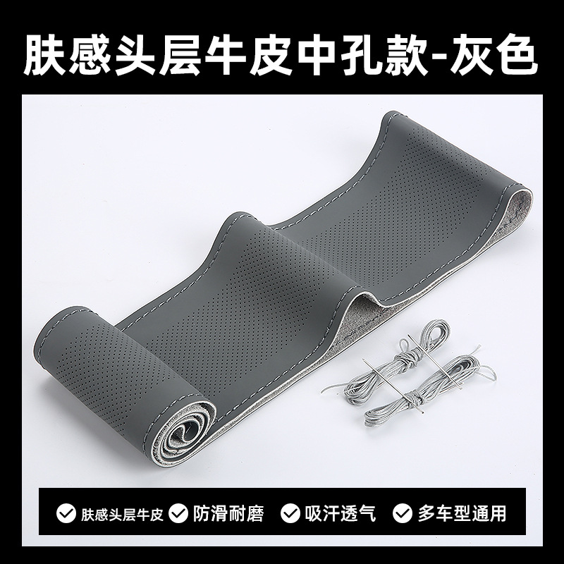 피부 느낌 상단 레이어 소 가죽 손으로 스티치 스티어링 휠 커버 사계절 유니버설 가죽 자동차 핸들 커버 새로운 가죽 커버