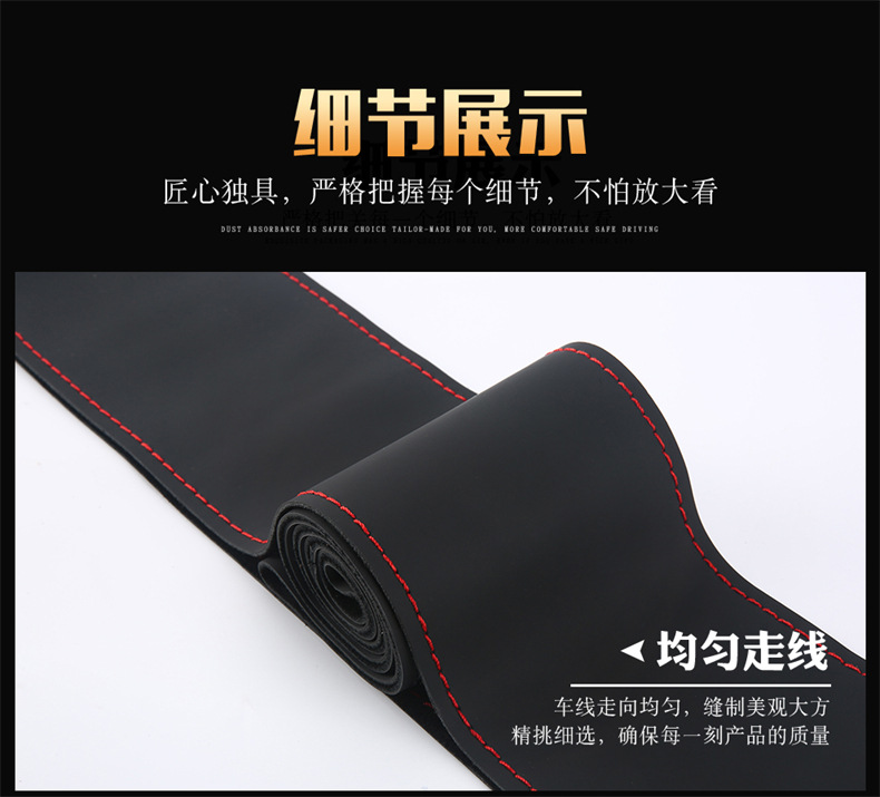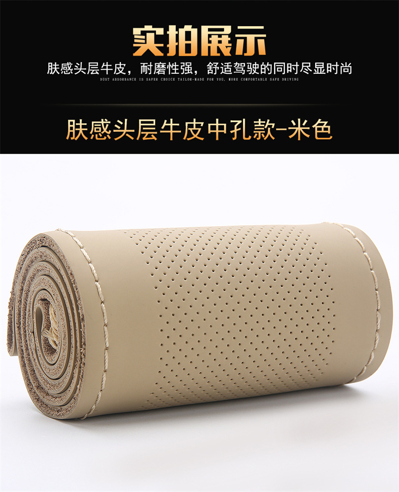 피부 느낌 상단 레이어 소 가죽 손으로 스티치 스티어링 휠 커버 사계절 유니버설 가죽 자동차 핸들 커버 새로운 가죽 커버스토어 가기