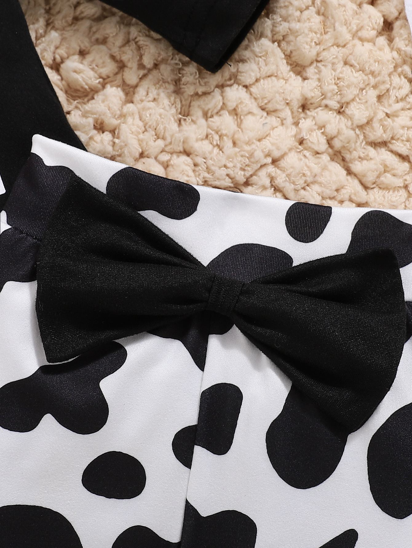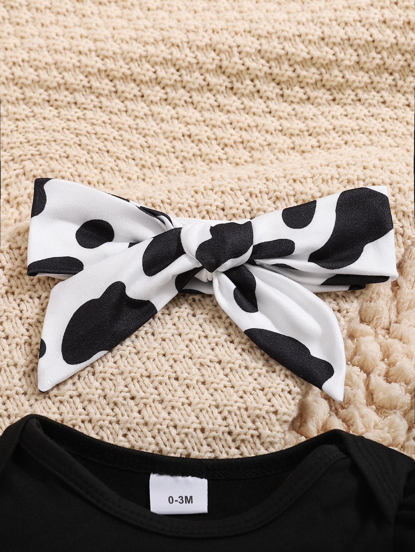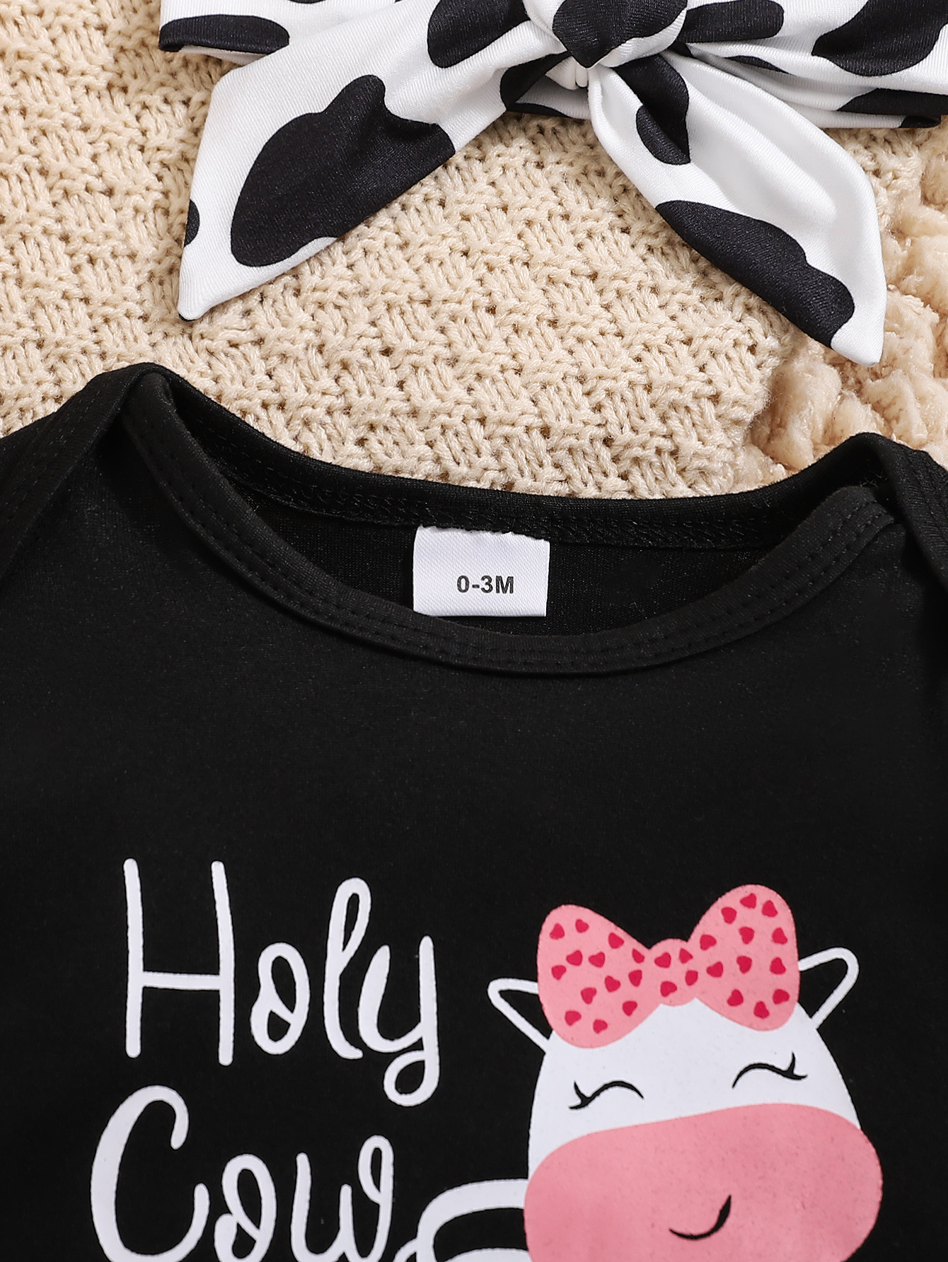 신생아 봄 여름 유럽과 미국의 긴 소매 만화 편지 인쇄 된 바지 암소 인쇄 된 머리띠 모자 세트