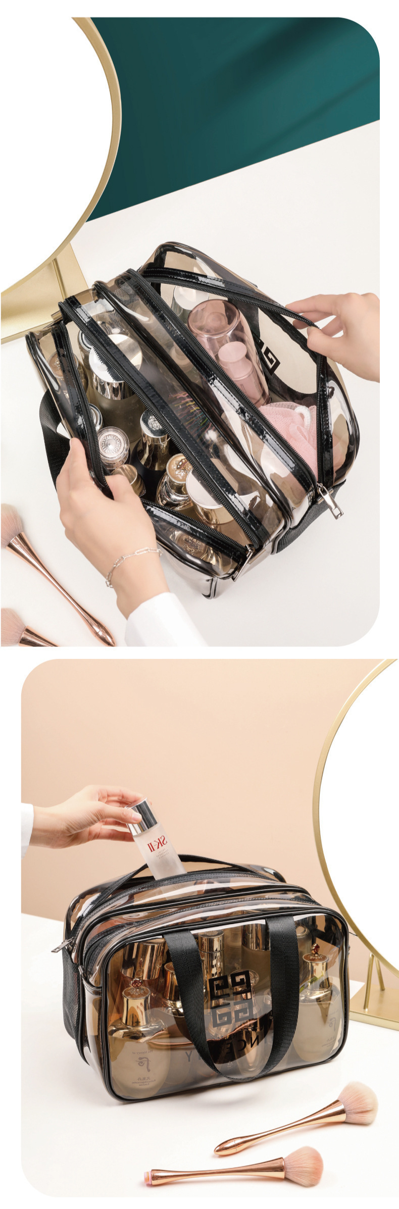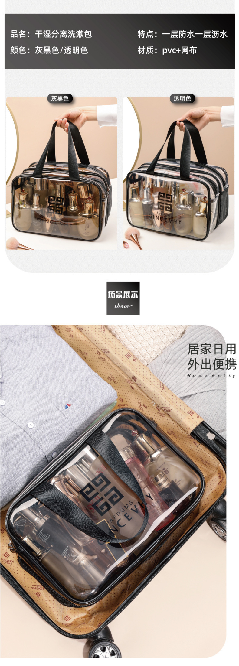 건식 및 습식 분리 화장품 가방, 여행용 휴대용 보관 가방, 화장품 세면 가방, PVC 이중층 방수 보관 가방