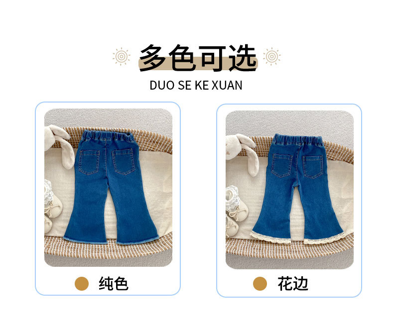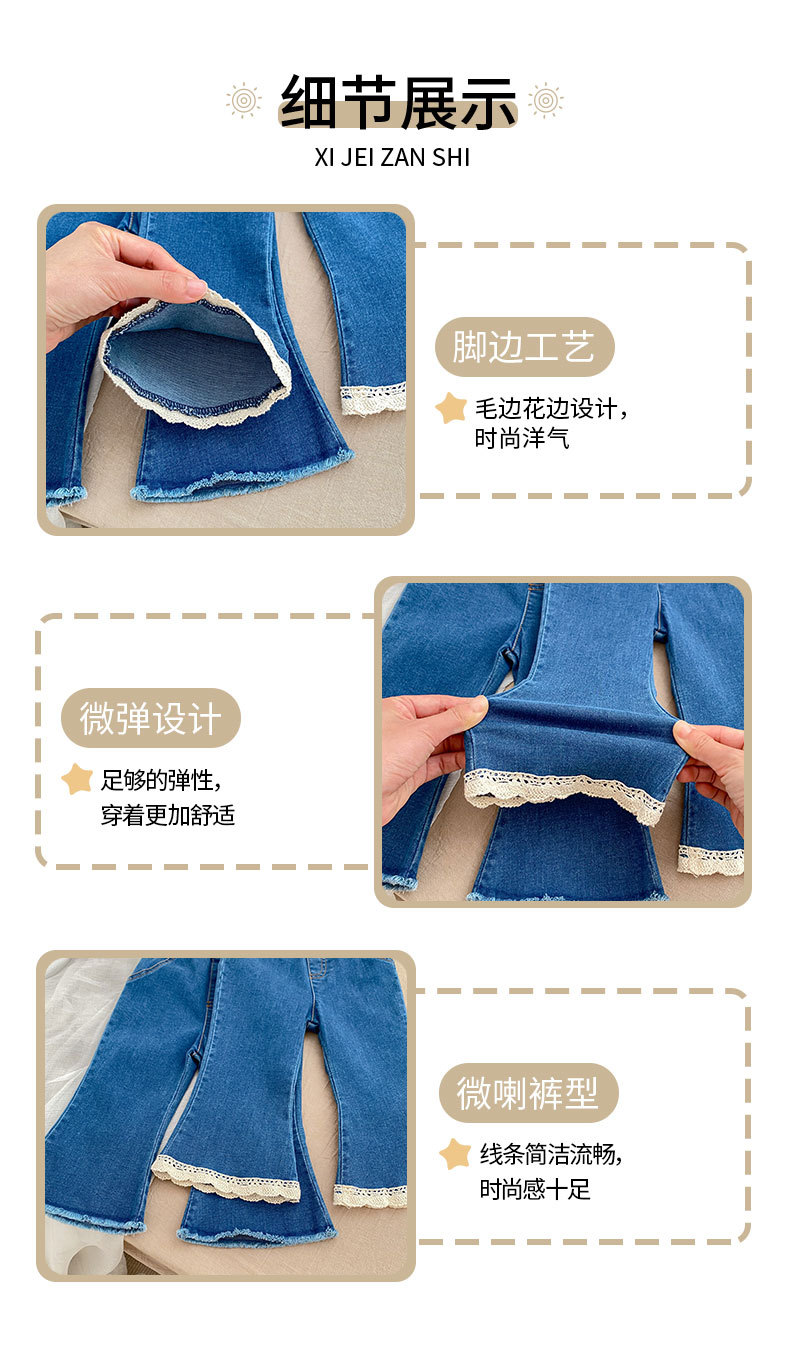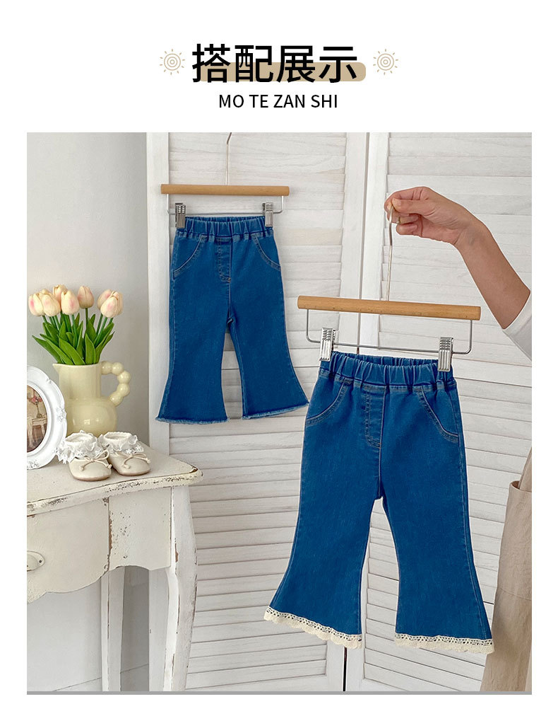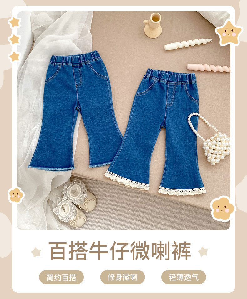 가을 2024 Ins 어린이 바지 소녀 아기 바지 간단한 슬림 핏 마이크로 플레어 바지 캐주얼 올 매치 청바지