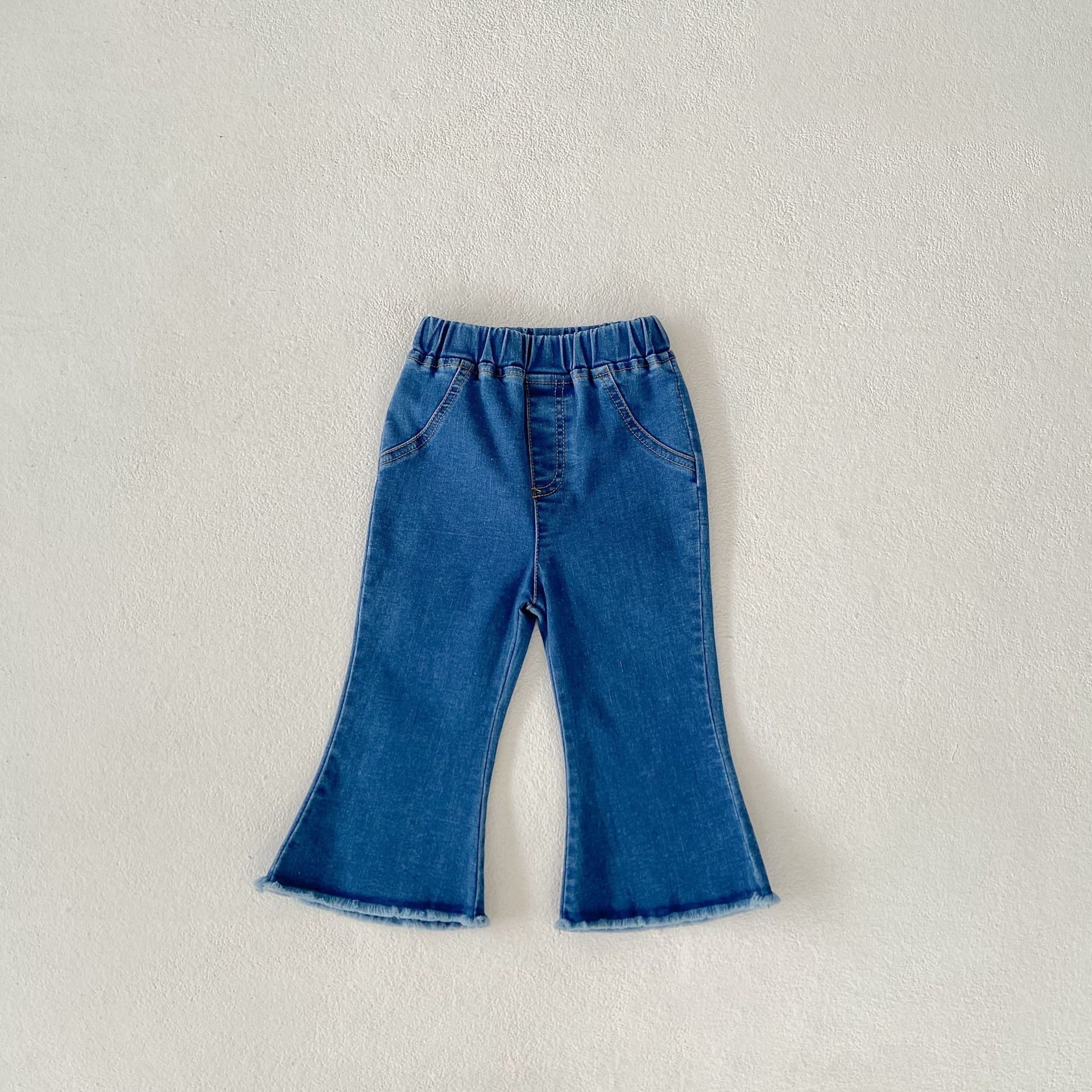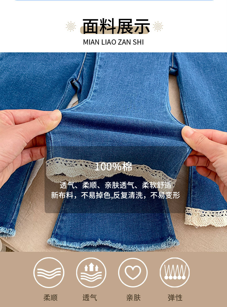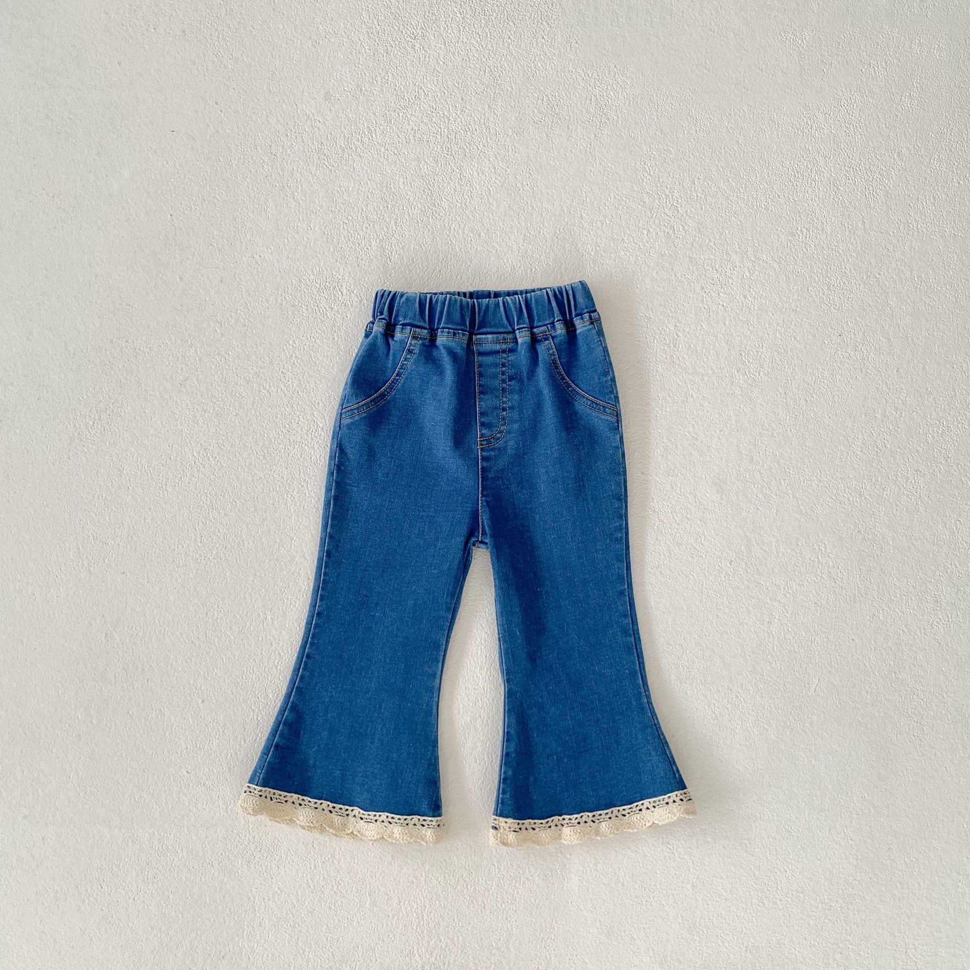 가을 2024 Ins 어린이 바지 소녀 아기 바지 간단한 슬림 핏 마이크로 플레어 바지 캐주얼 올 매치 청바지
