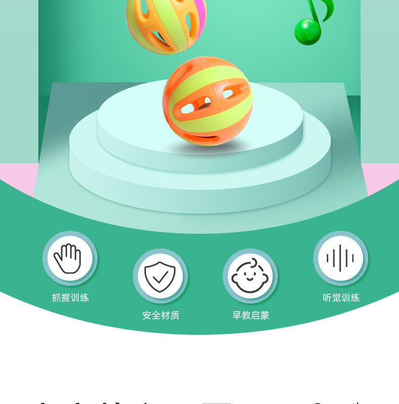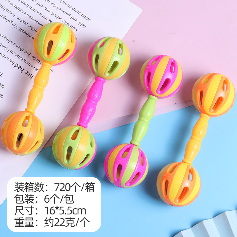 아기 장난감 손 딸랑이 장난감 벨 볼 조기 교육 파악 만화 음악 더블 헤드 딸랑이 도매