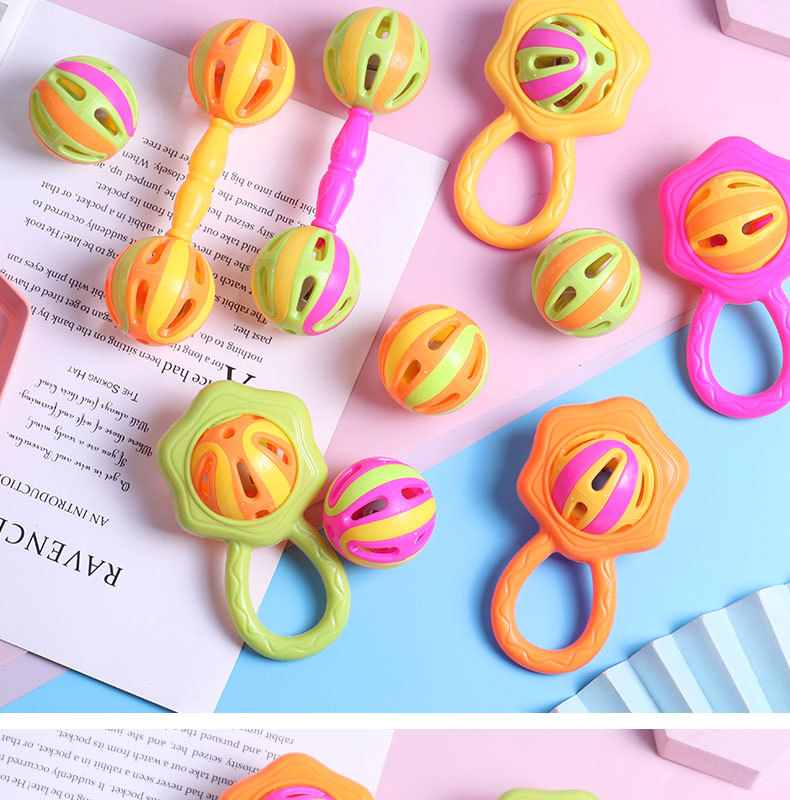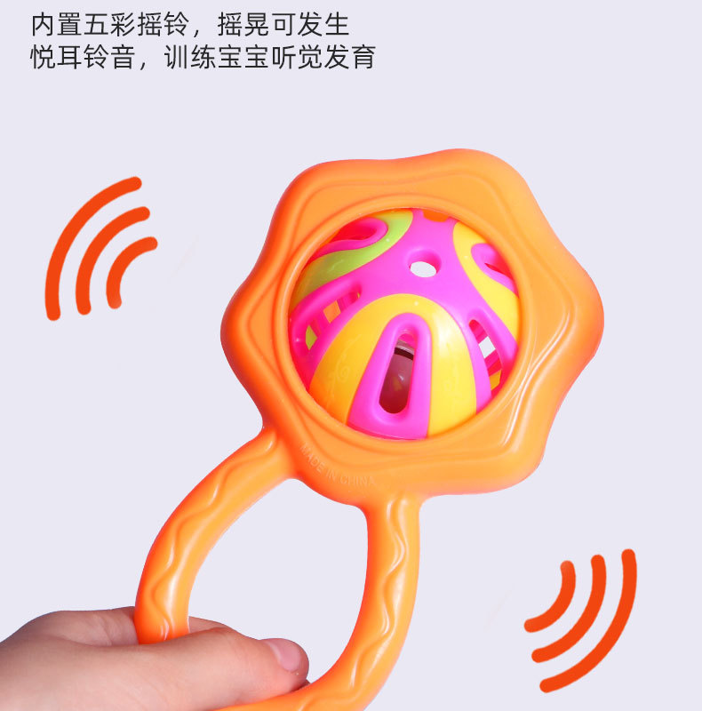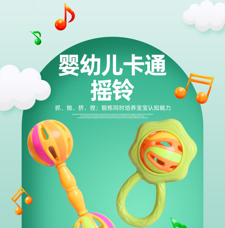 아기 장난감 손 딸랑이 장난감 벨 볼 조기 교육 파악 만화 음악 더블 헤드 딸랑이 도매스토어 가기