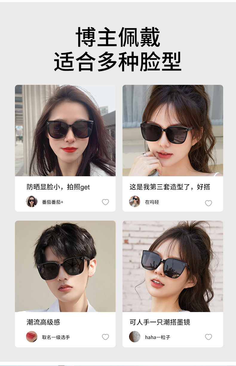 2024 새로운 gm 선글라스 여성의 하이 엔드 센스 스트리트 화이트 선글라스 남성 운전 편광판 UV 보호스토어 가기