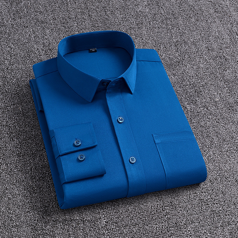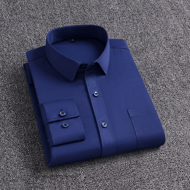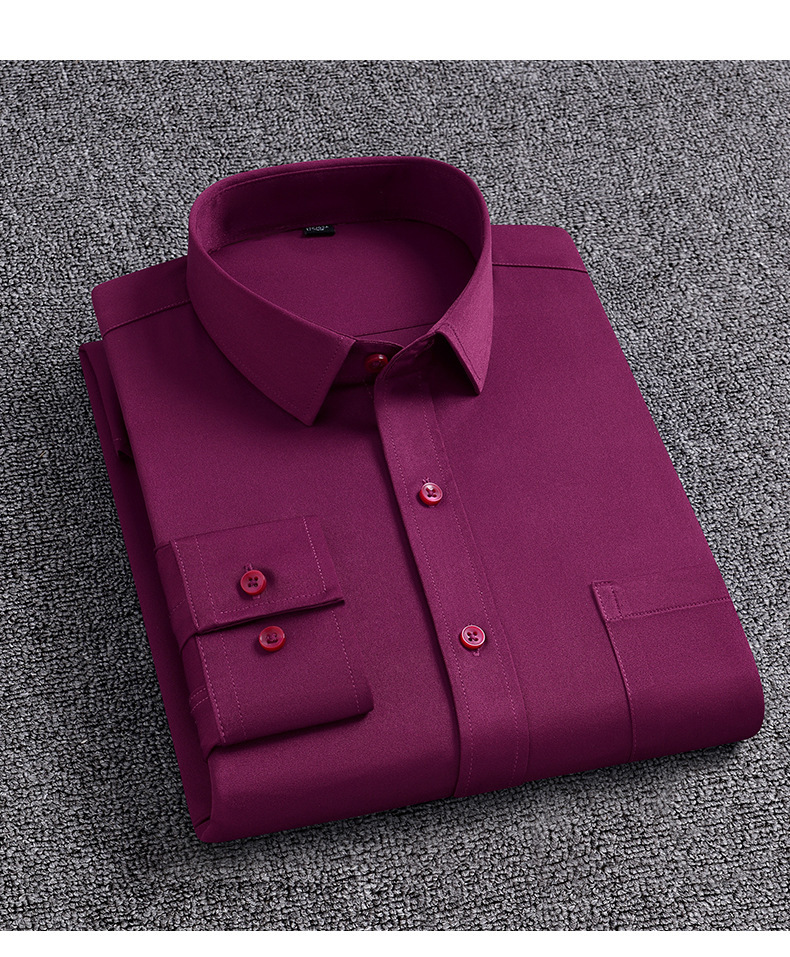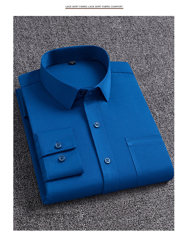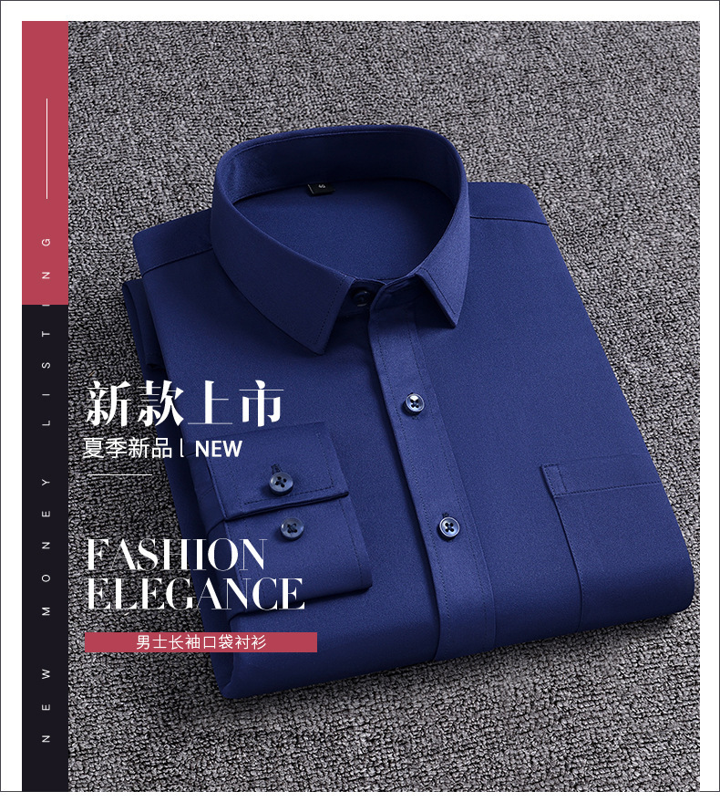 포켓 중년 긴팔 봄 · 가을 캐주얼 다림질 4 면 스트레치 비즈니스 솔리드 컬러 셔츠 국경 남성 셔츠