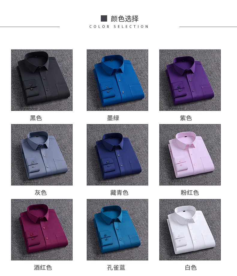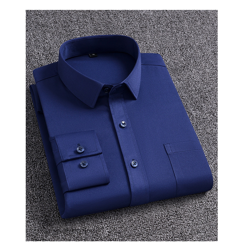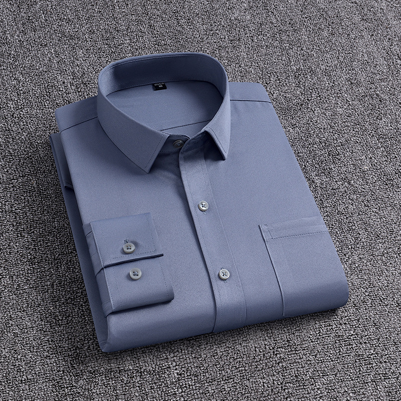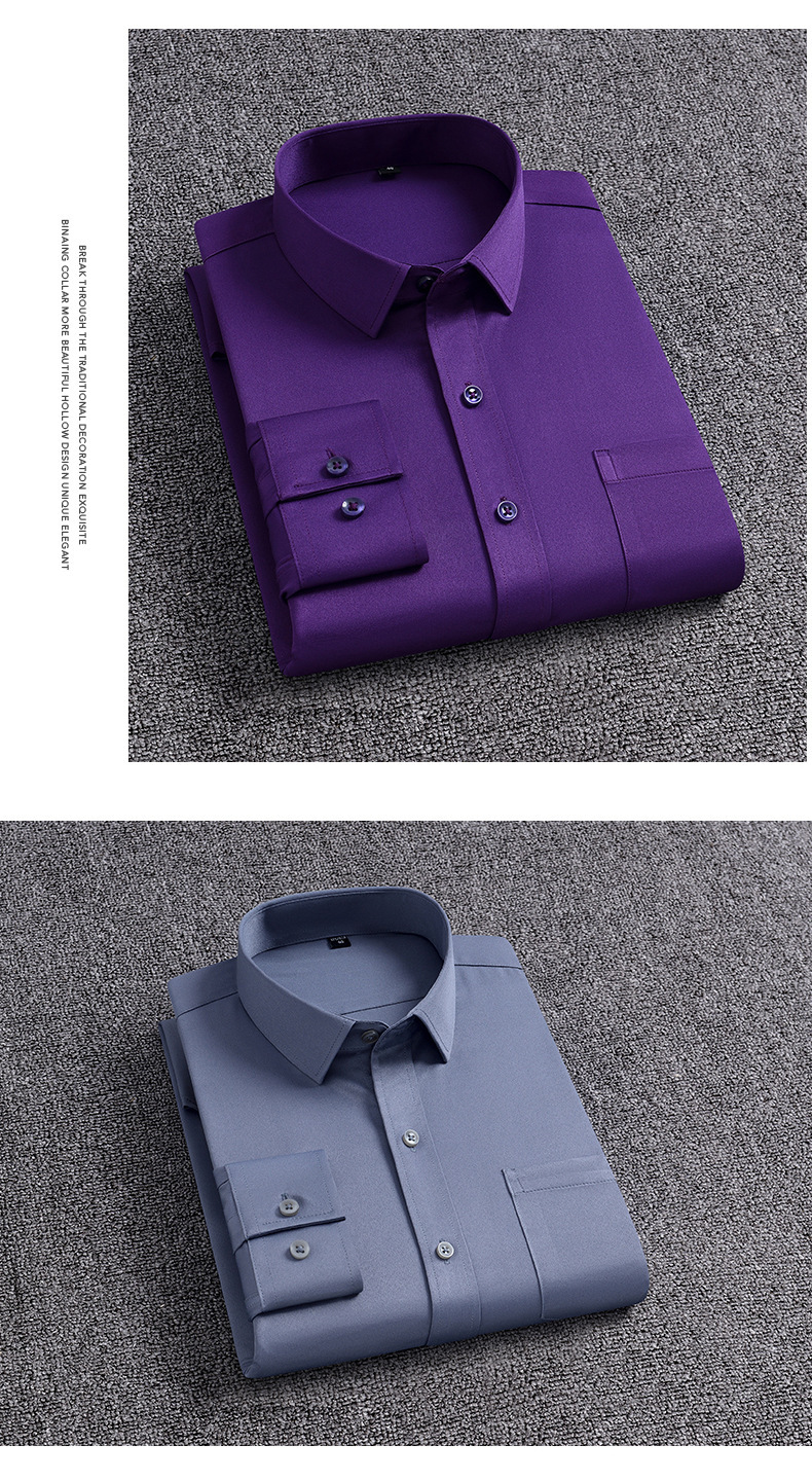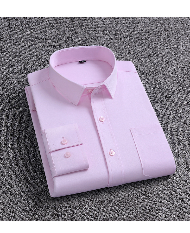 포켓 중년 긴팔 봄 · 가을 캐주얼 다림질 4 면 스트레치 비즈니스 솔리드 컬러 셔츠 국경 남성 셔츠