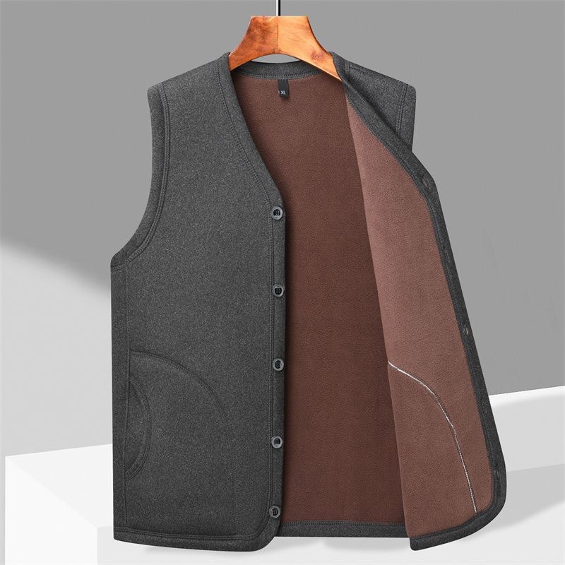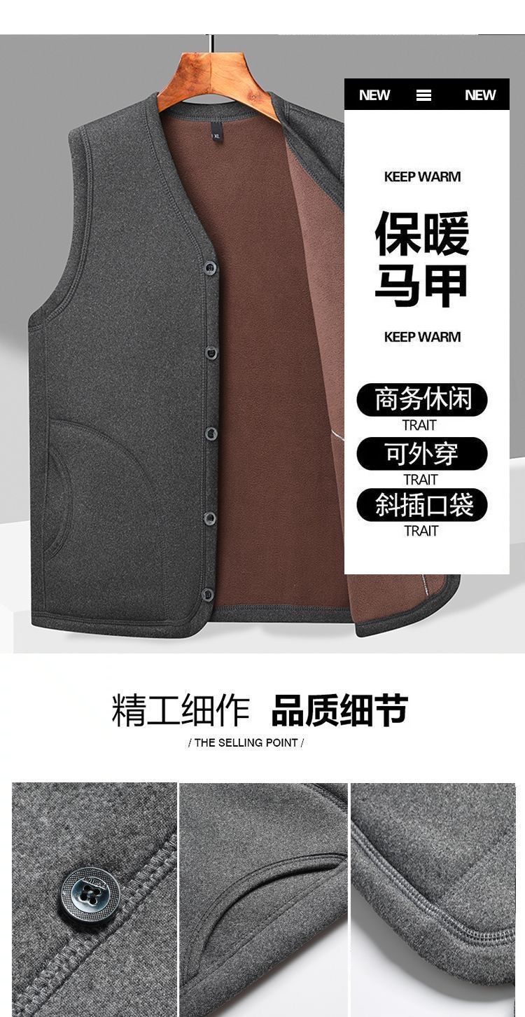 중년 및 노인을위한 기모 두꺼운 조끼 아빠 남성용 따뜻한 조끼 착용