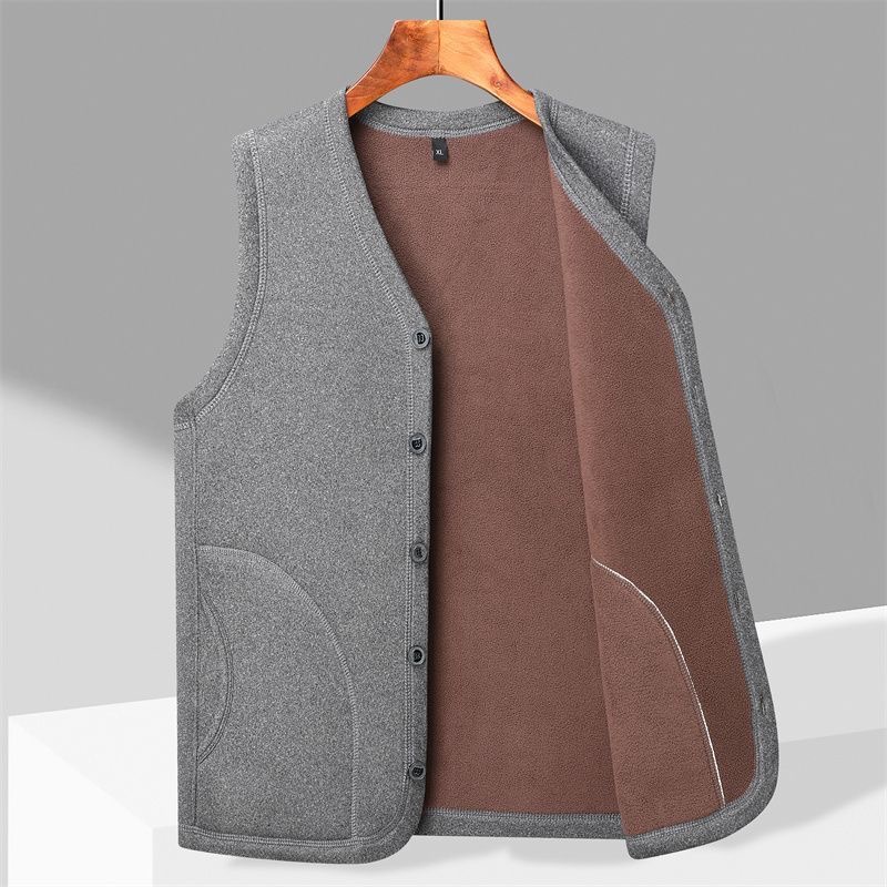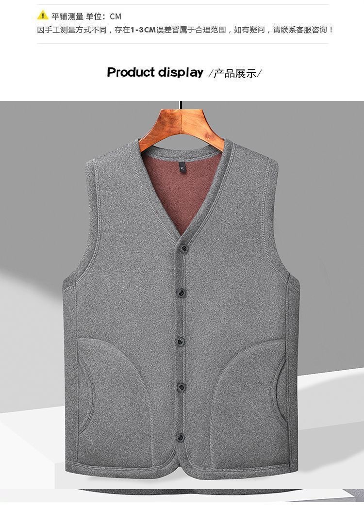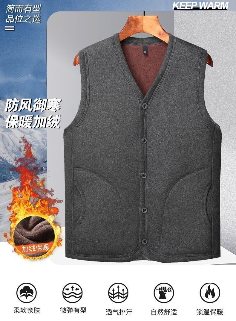 중년 및 노인을위한 기모 두꺼운 조끼 아빠 남성용 따뜻한 조끼 착용스토어 가기