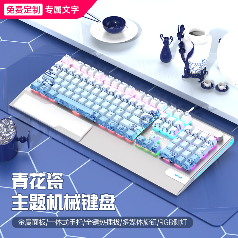 • 실버 바닥-파란색과 흰색 도자기 (플러그 샤프트/RGB 측면 빛/큰 손 휴식/손잡이)