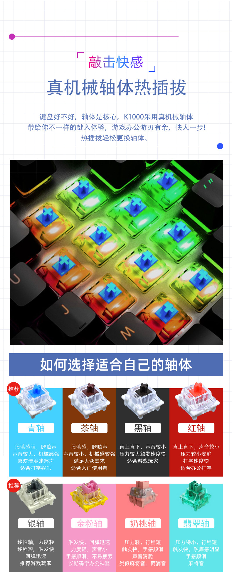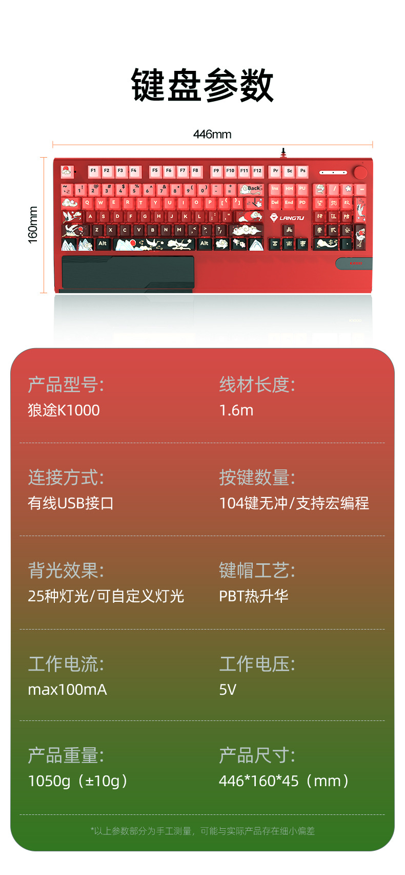 Langtu K1000 게임 E-스포츠 기계 키보드 104 키 유선 녹색 축 홍축 차 축 음소거 PBT스토어 가기