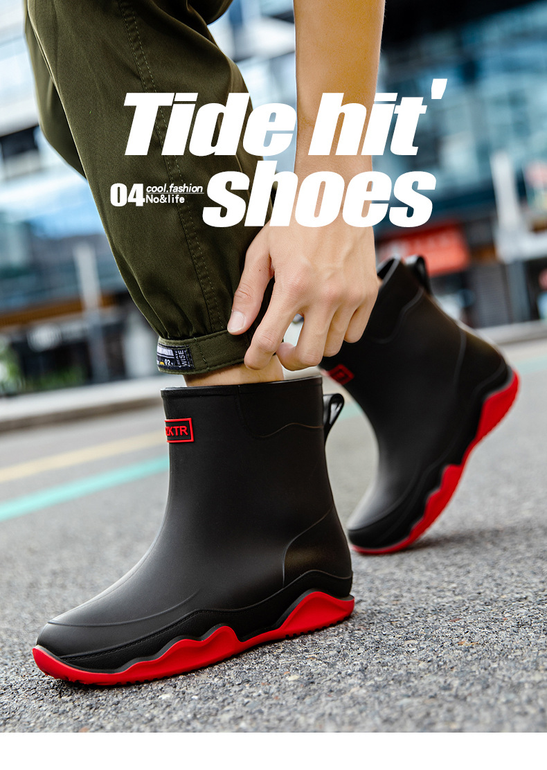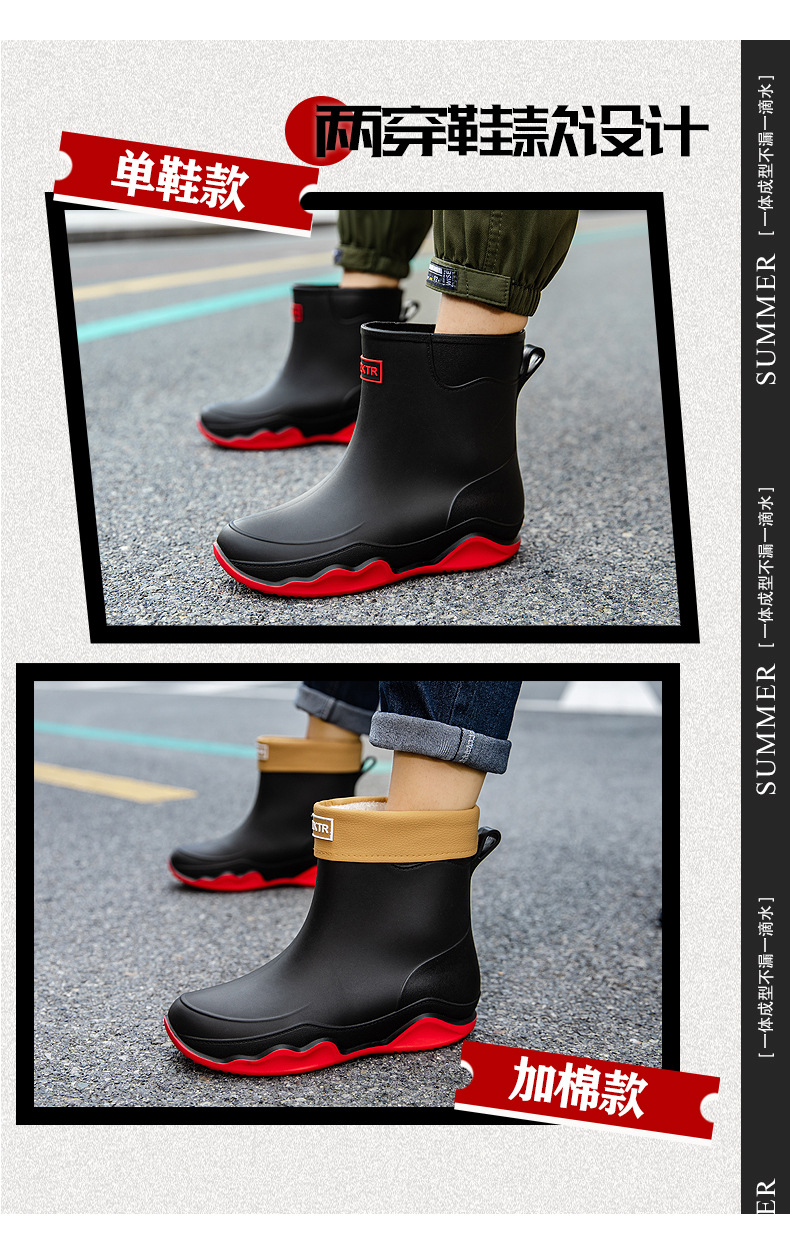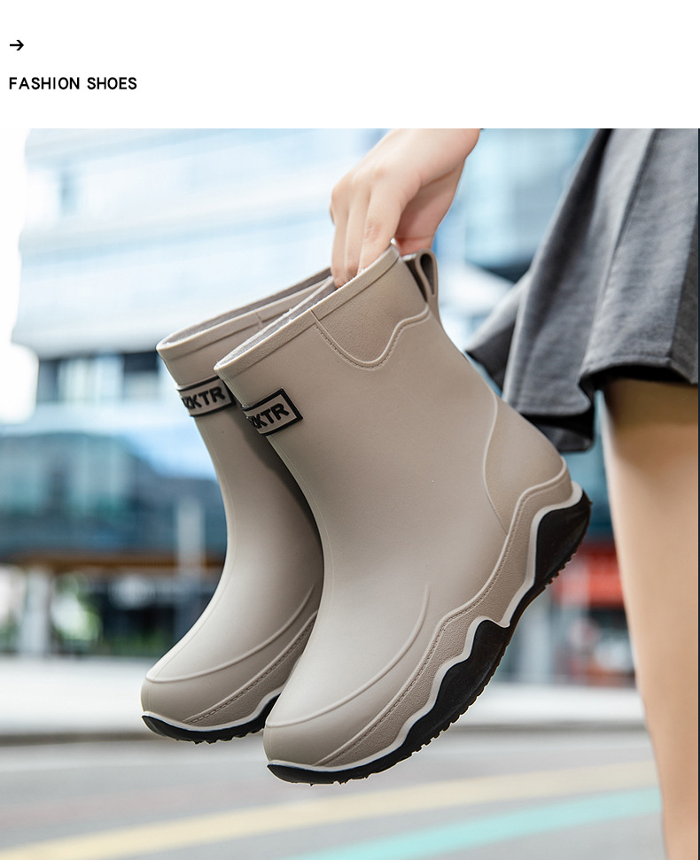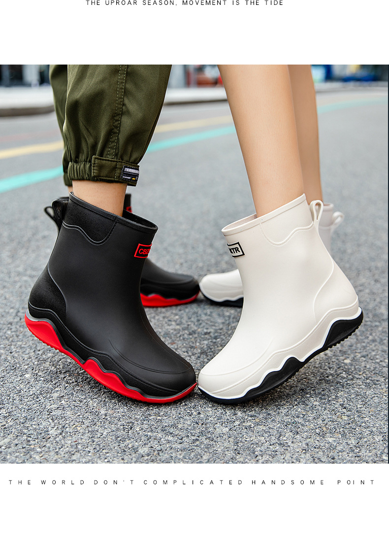 일본식 레인슈즈 여성용 중간 길이 플라스틱 방수 신발 야외용 경량 워터슈즈 미끄럼 방지 고무신 주방용 슈즈 커플용스토어 가기