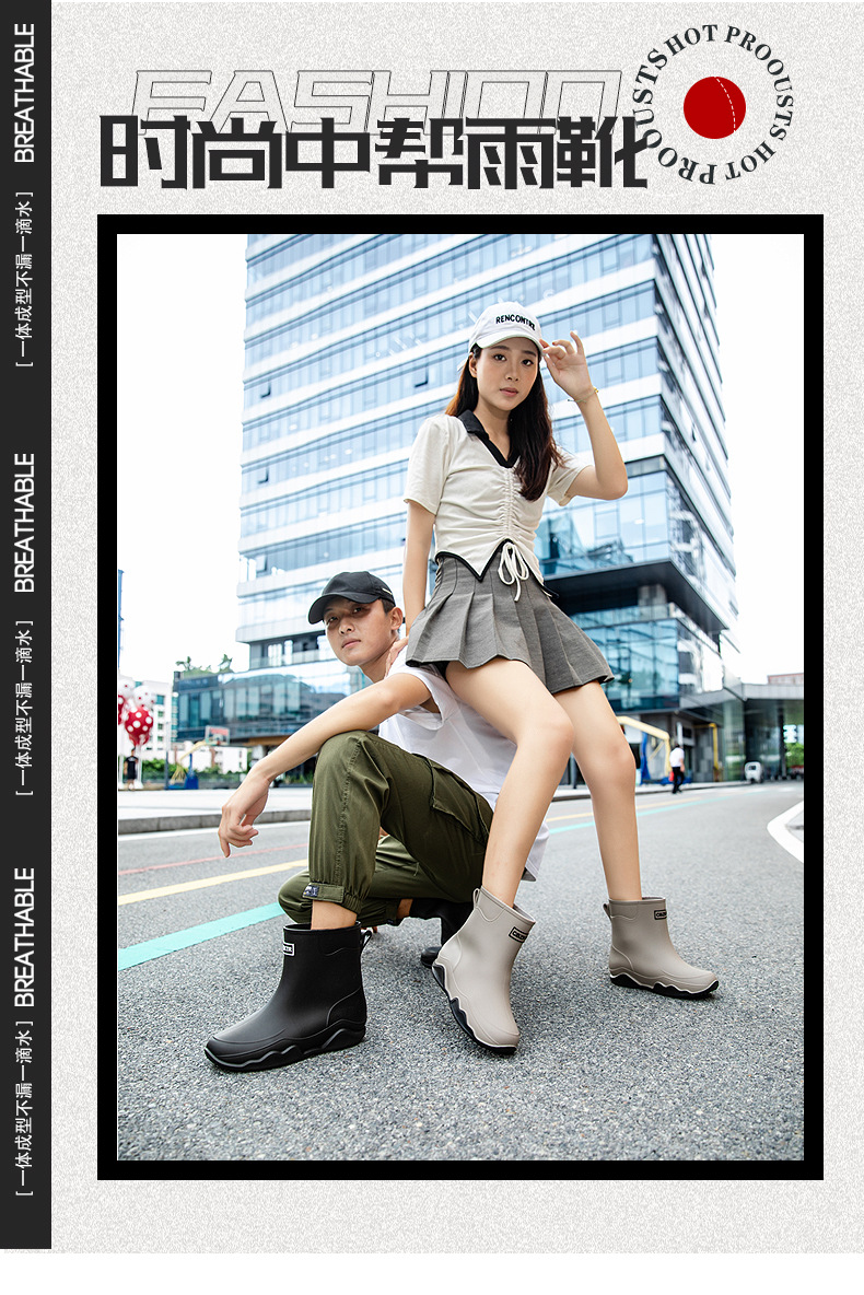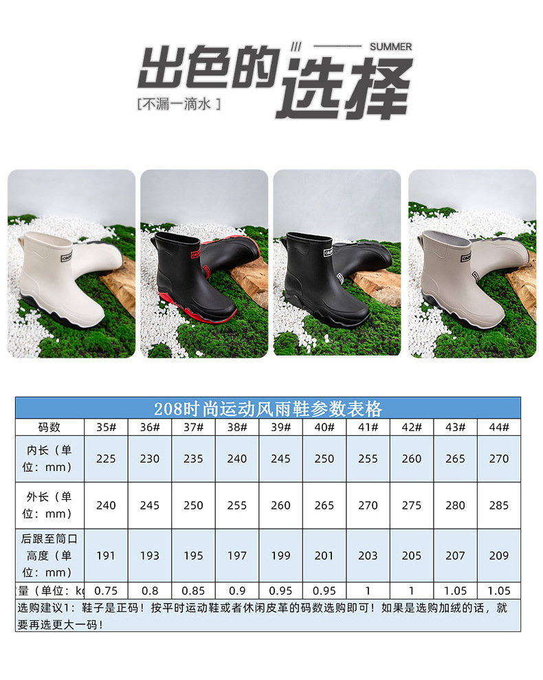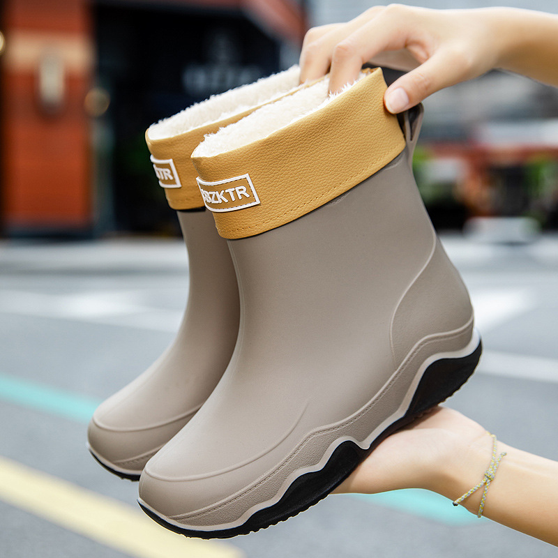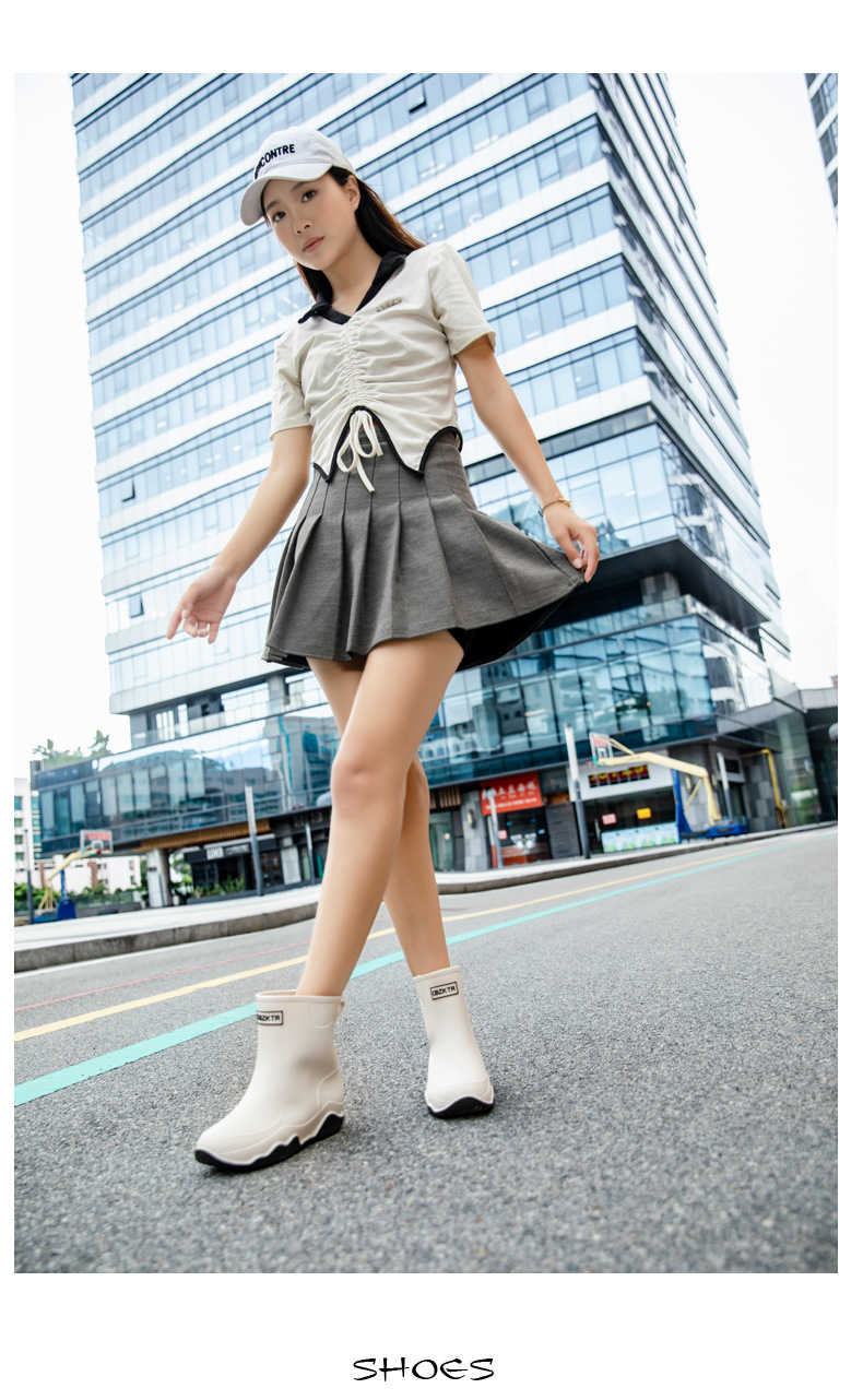 일본식 레인슈즈 여성용 중간 길이 플라스틱 방수 신발 야외용 경량 워터슈즈 미끄럼 방지 고무신 주방용 슈즈 커플용스토어 가기