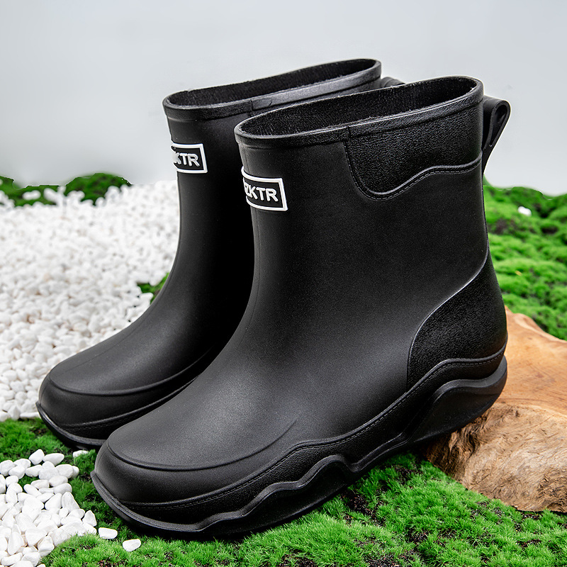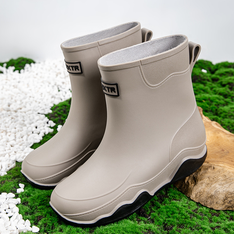 일본식 레인슈즈 여성용 중간 길이 플라스틱 방수 신발 야외용 경량 워터슈즈 미끄럼 방지 고무신 주방용 슈즈 커플용