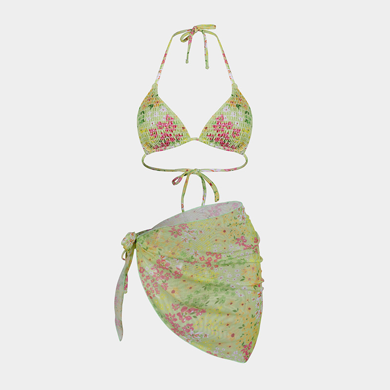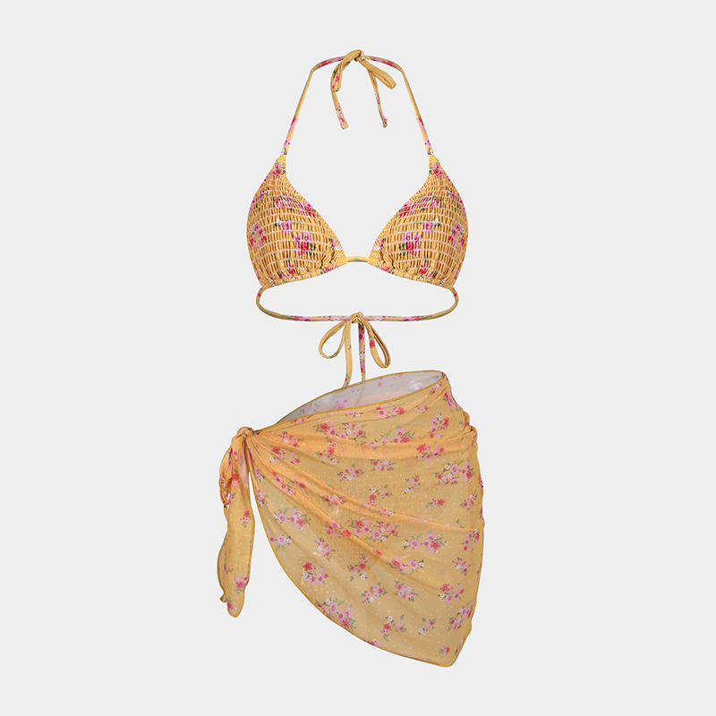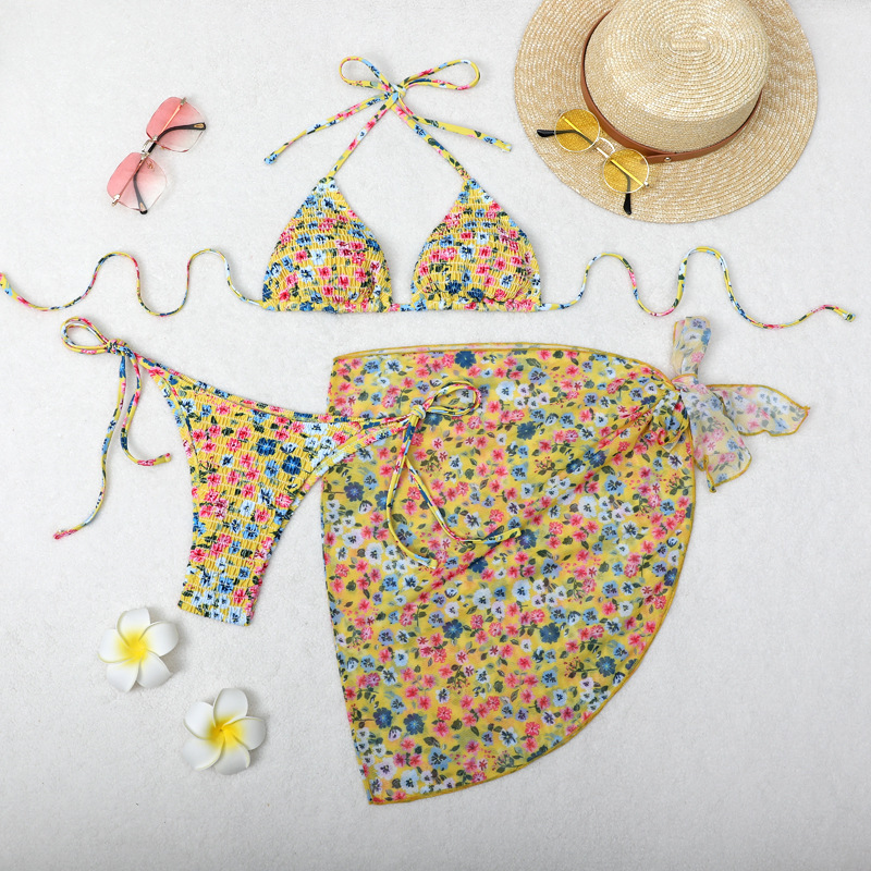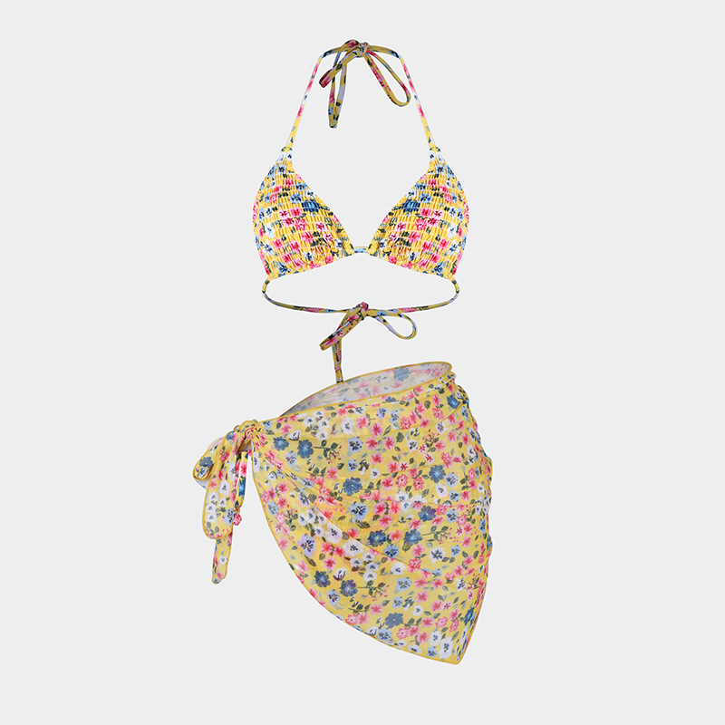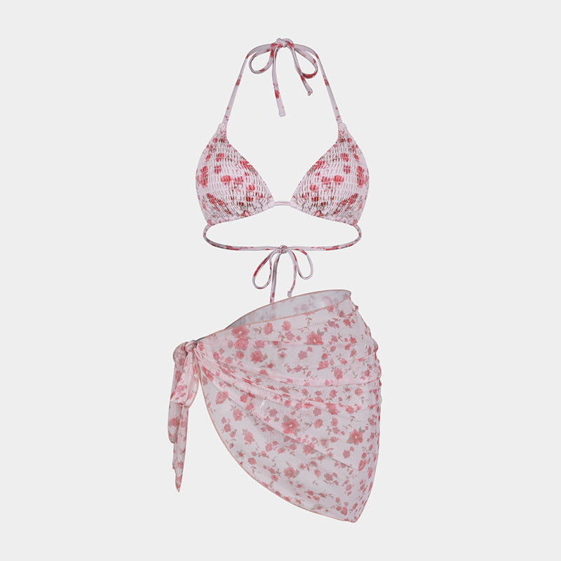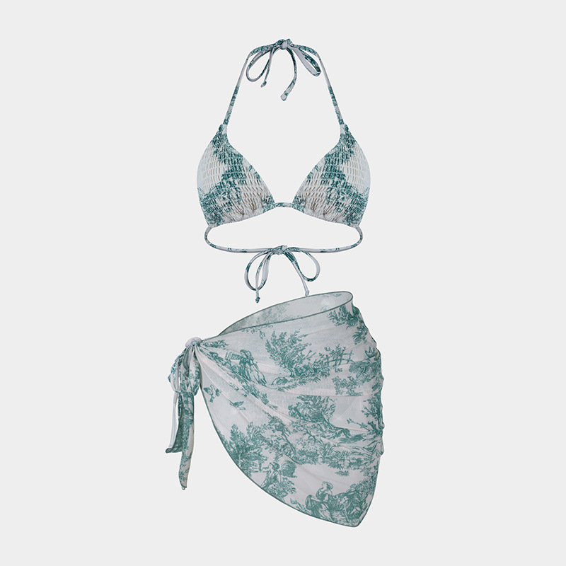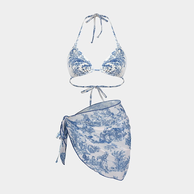 2025 유럽 및 미국 프린트 비키니 3피스 세트 크로스보더 라자다 랩스커트 분리형 섹시 휴가 비키니 수영복스토어 가기