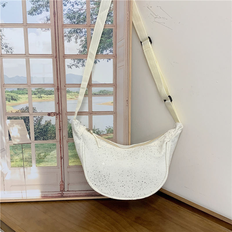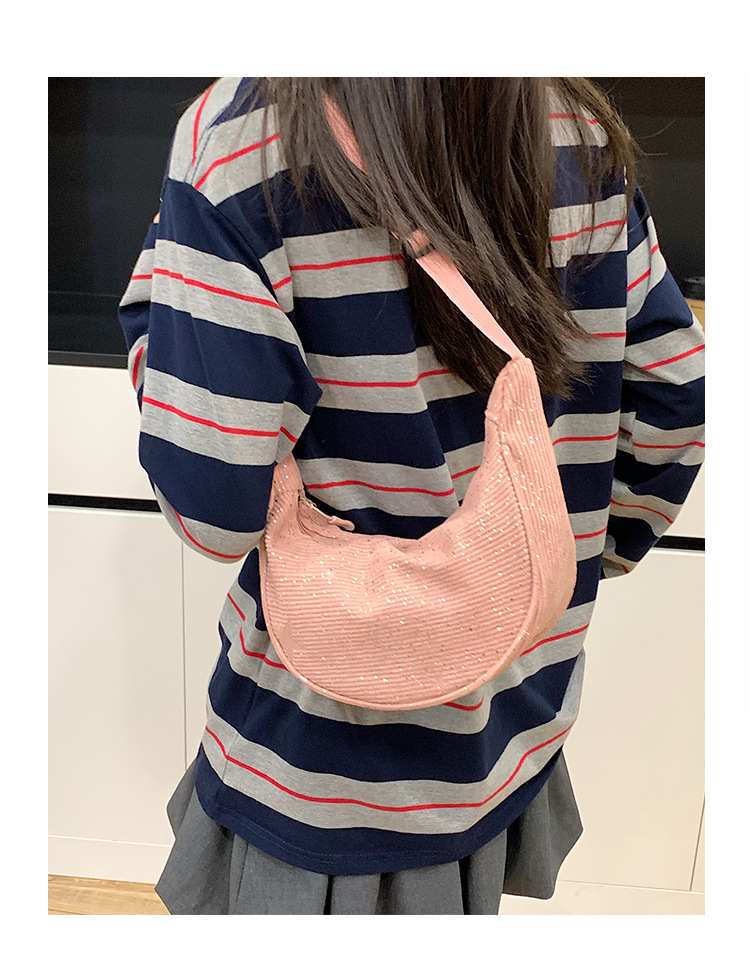 패셔너블하고 개성 넘치는 여성용 스팽글 버킷백 2026년 신상 스타일리쉬한 한국형 숄더백 크로스백 이브닝백 트렌디한 주름 디자인
