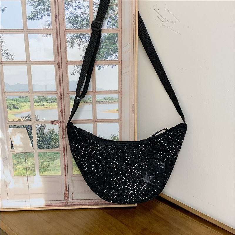 • 검정색 반짝이 별 모양 만두 가방