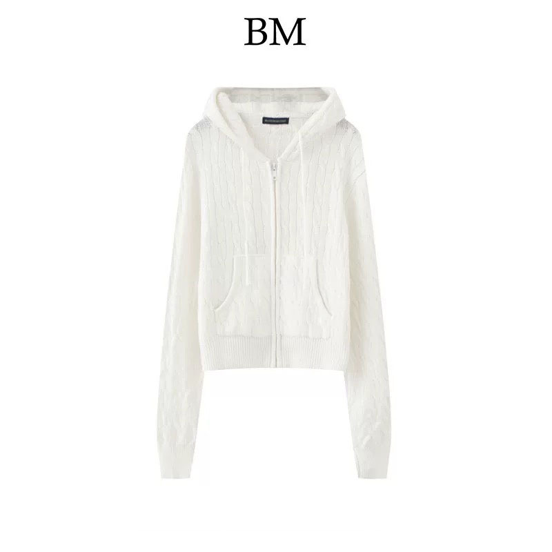 BM 스타일 아메리칸 스타일 후드 트위스트 스웨터 니트웨어 탑 여성 bm 스파이스 걸즈 퓨어 원함 짧은 카디건 지퍼 코트 트렌디스토어 가기