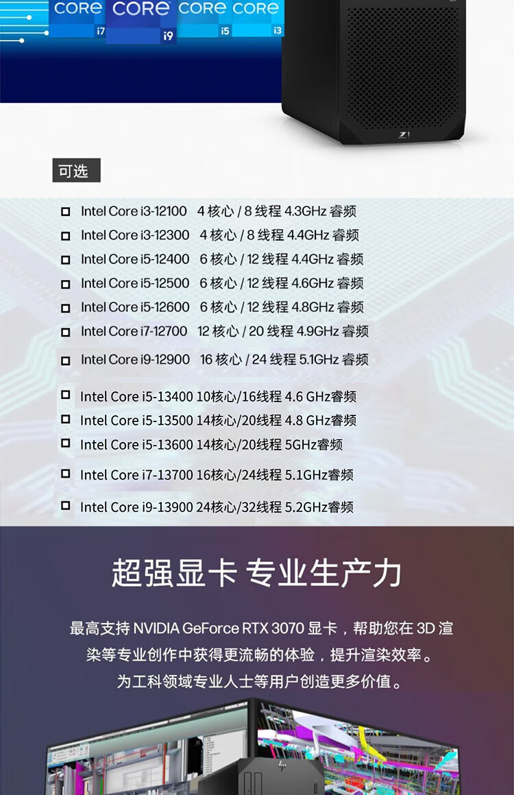 (HP) 데스크톱 Z1G9 워크 스테이션 비즈니스 오피스 디자인 하이 엔드 컴퓨터 I3 세대 16 코어 구성 옵션스토어 가기