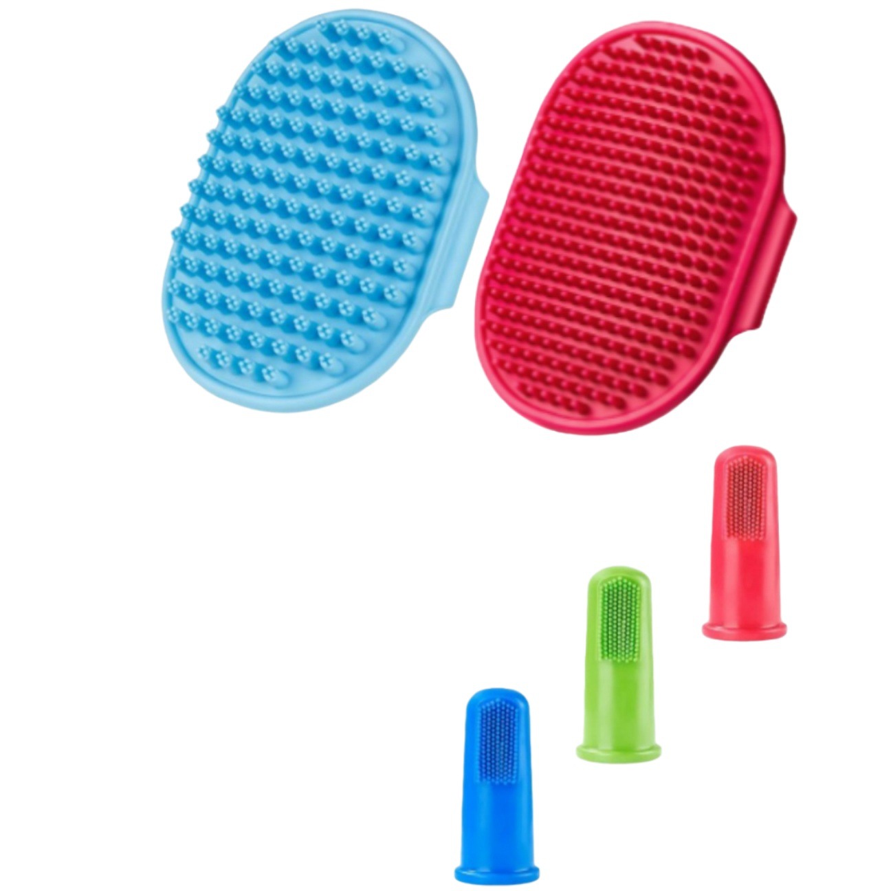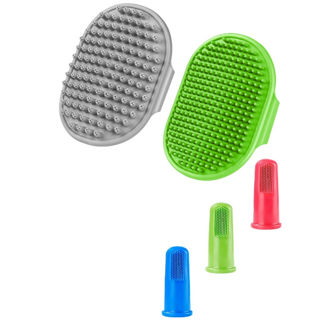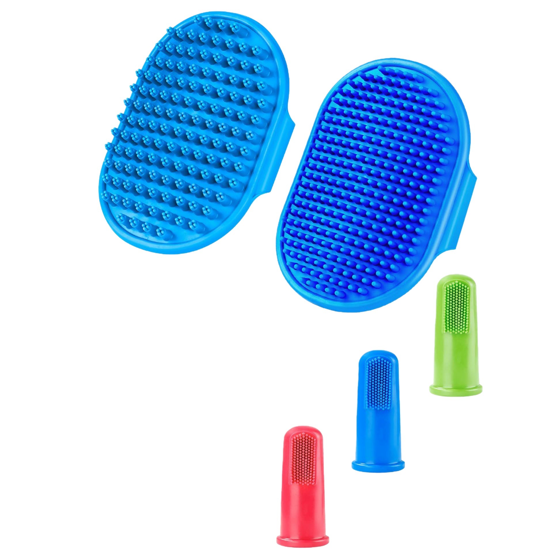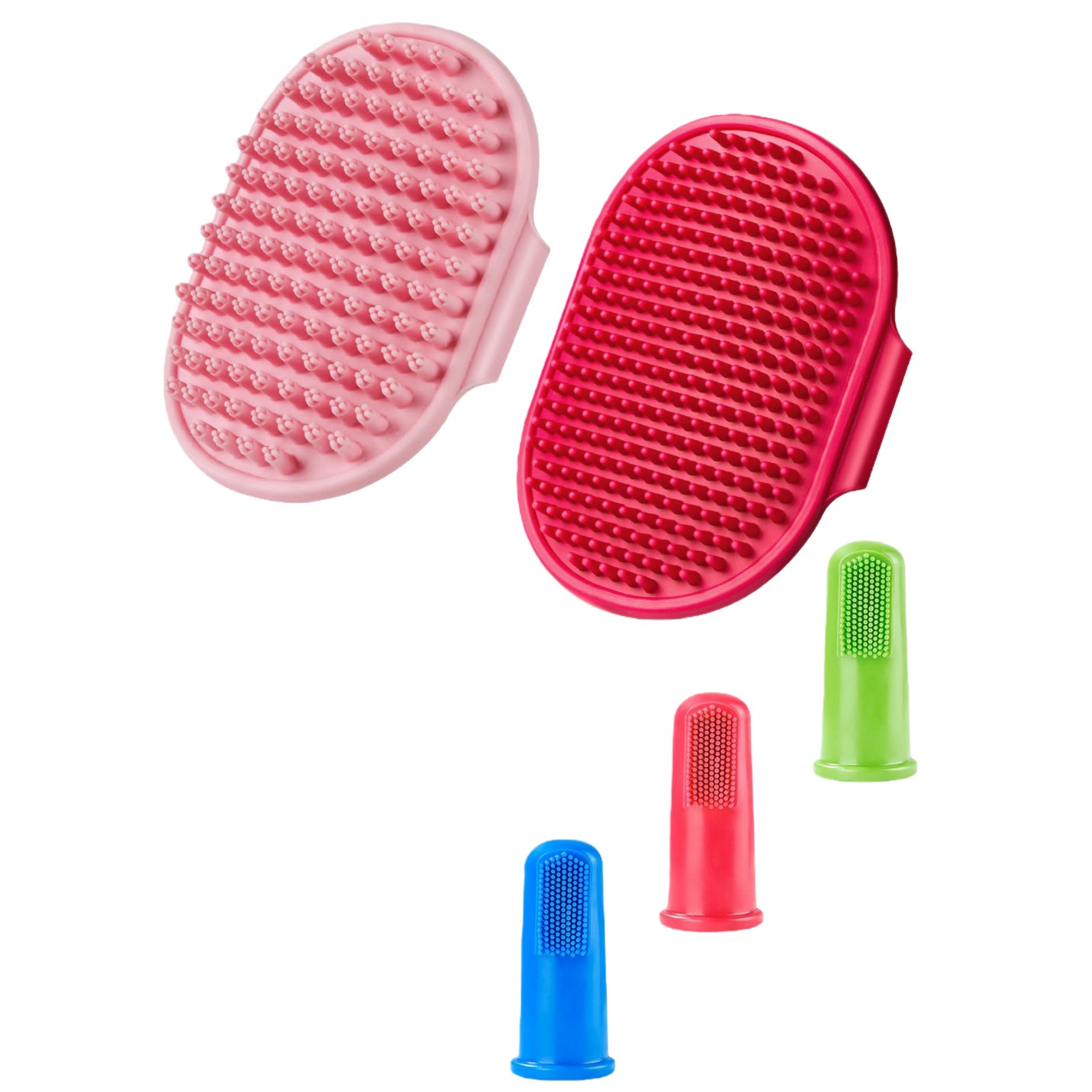 짧고 긴 머리를위한 조절 가능한 루프 손잡이가있는 개 목욕 개 샴푸 브러시 6 조각 세트