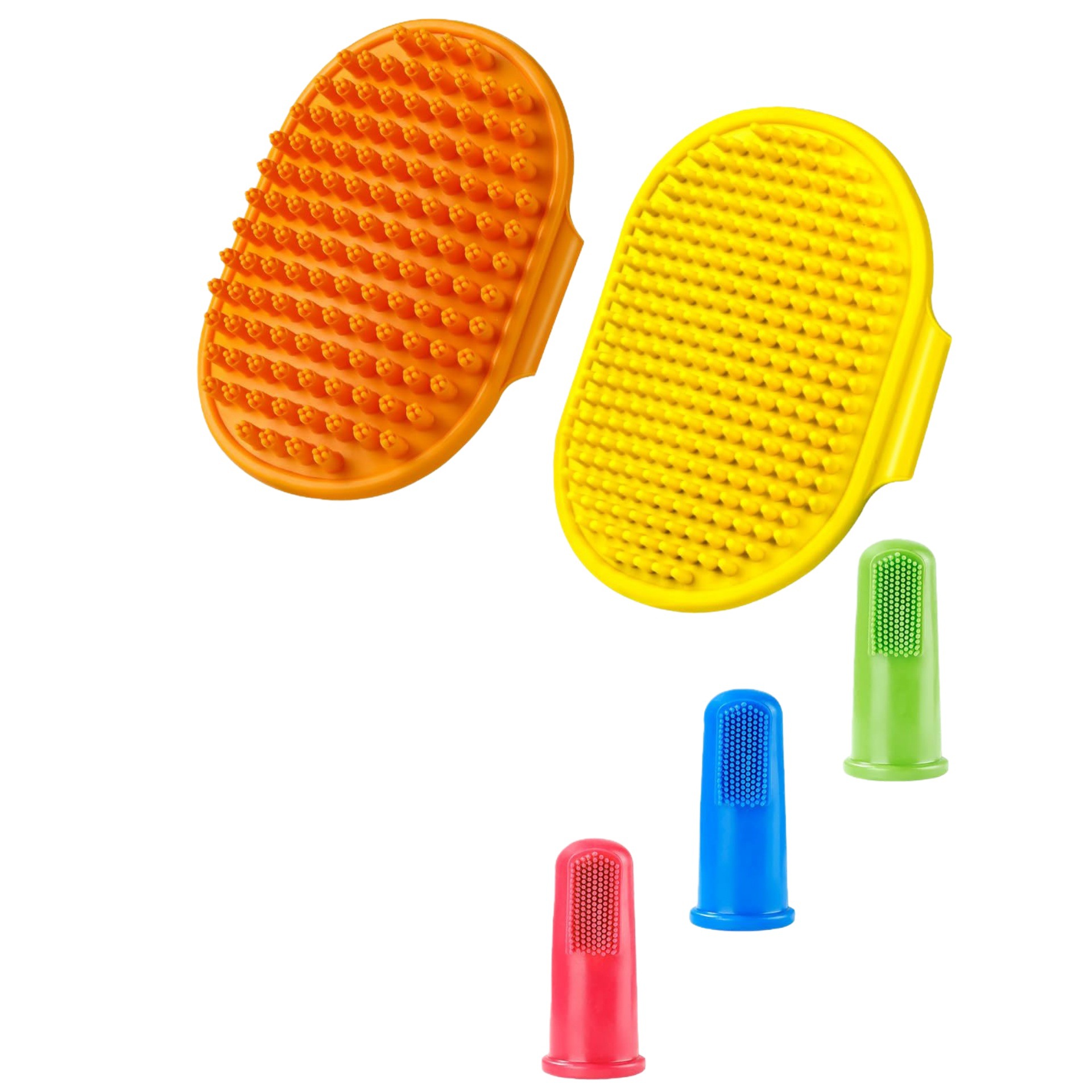 짧고 긴 머리를위한 조절 가능한 루프 손잡이가있는 개 목욕 개 샴푸 브러시 6 조각 세트스토어 가기
