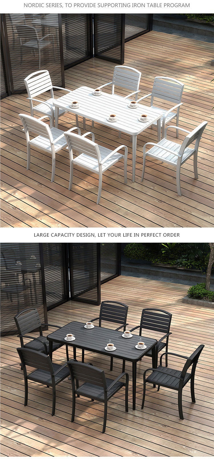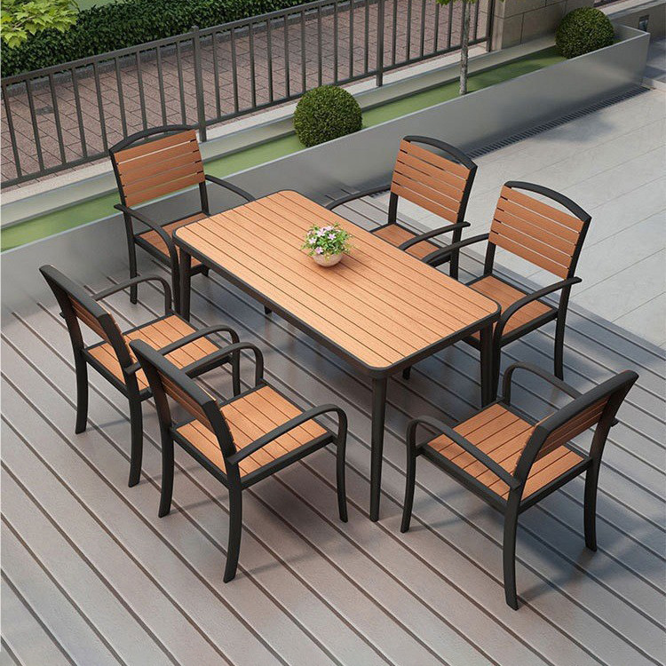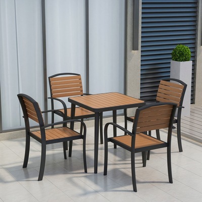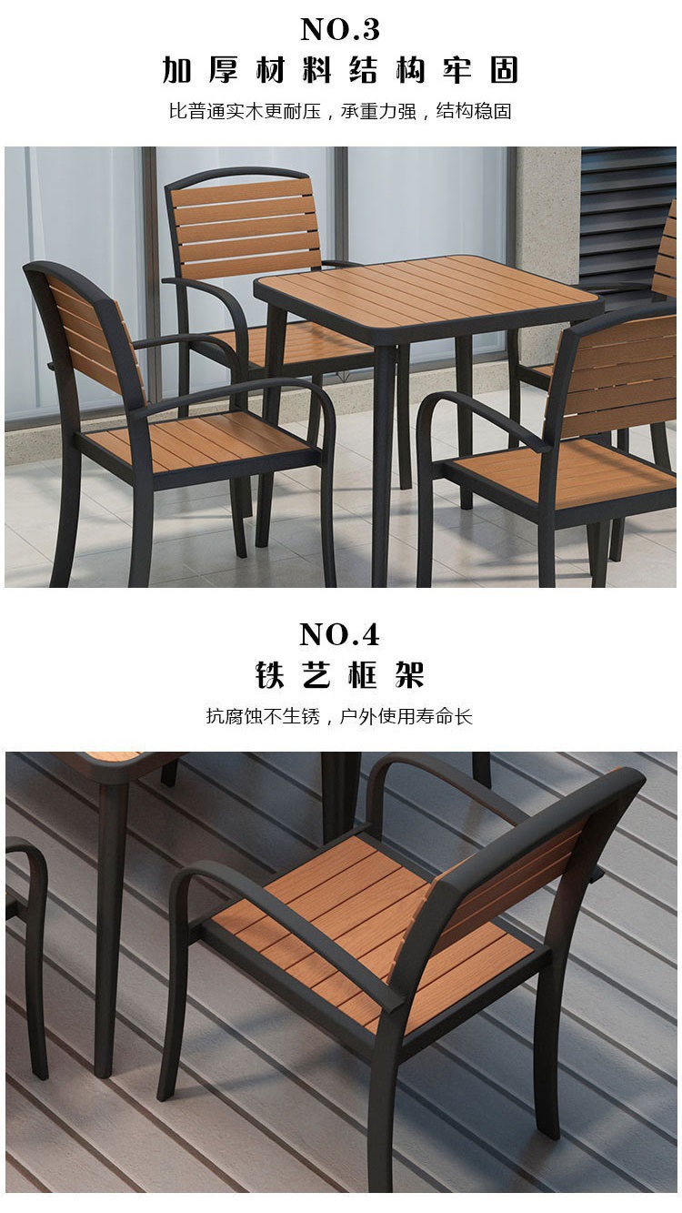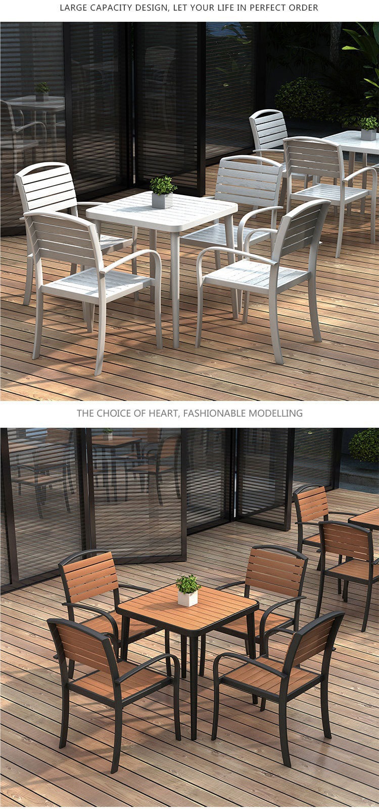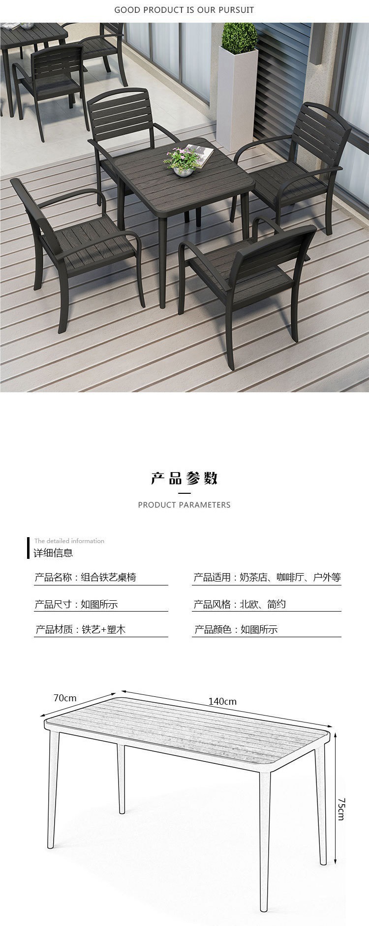 단철 야외 플라스틱 나무 테이블과 의자 조합 야외 카페 우유 차 가게 캐주얼 식탁 및 의자 안뜰 야외 테이블 및 의자