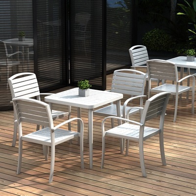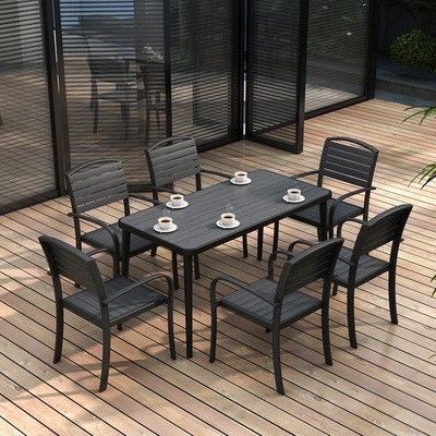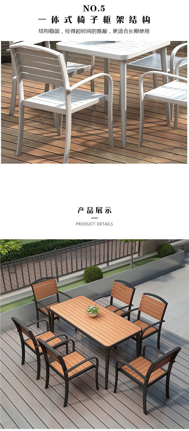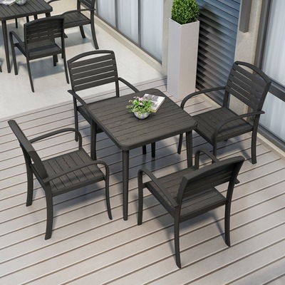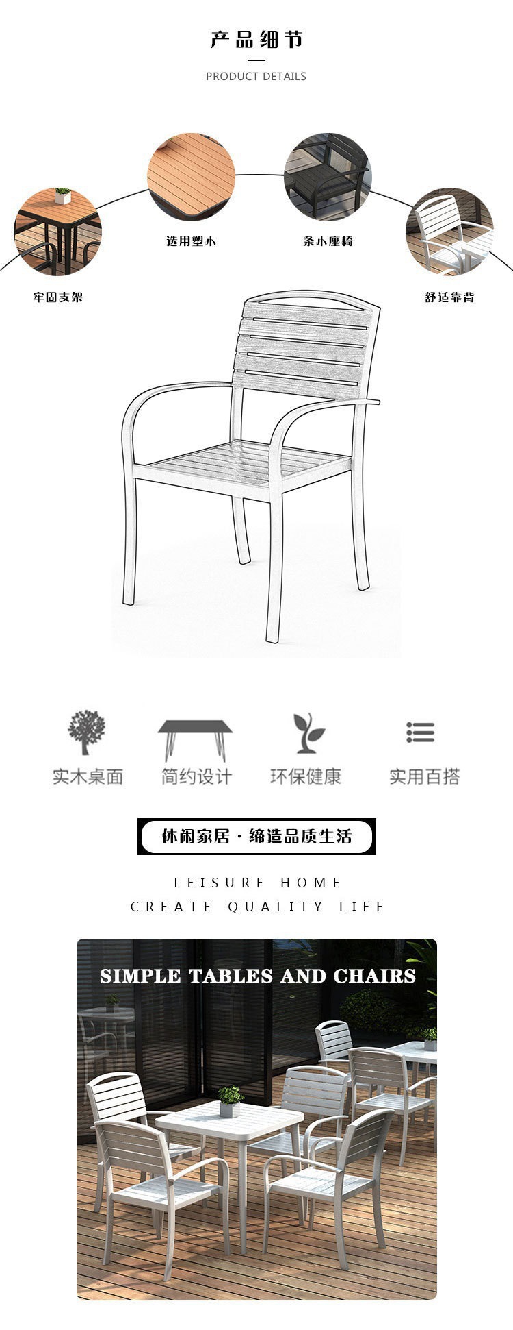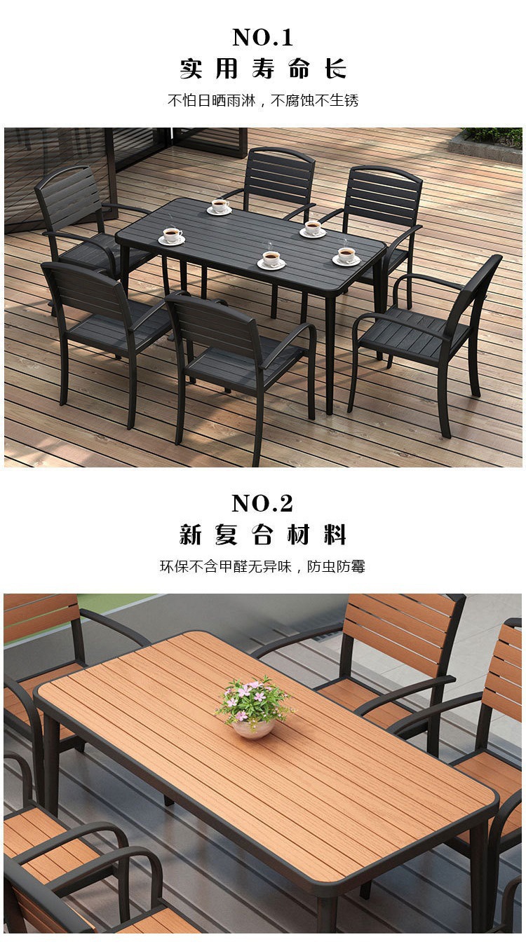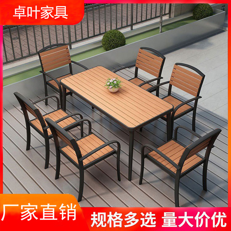 단철 야외 플라스틱 나무 테이블과 의자 조합 야외 카페 우유 차 가게 캐주얼 식탁 및 의자 안뜰 야외 테이블 및 의자
