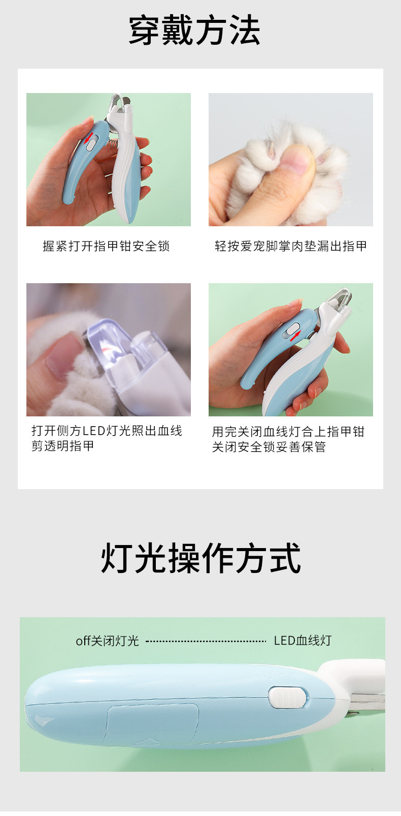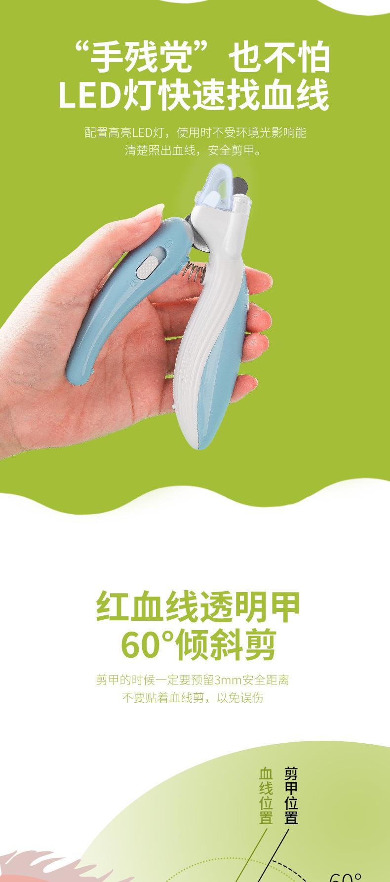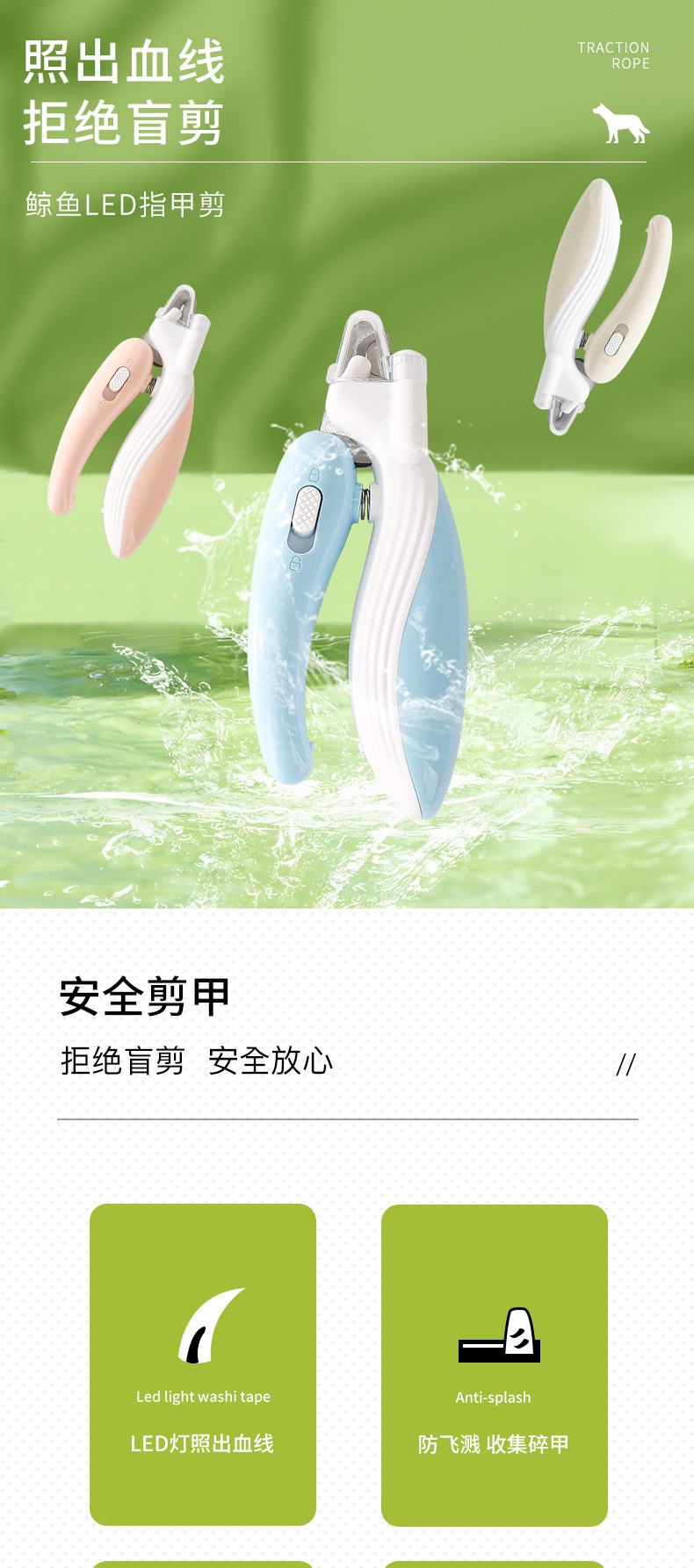 작은 고래 고양이 LED 가벼운 혈액 라인 네일 클리퍼 애완 동물 네일 클리퍼 개 출혈 방지 네일 그라인더 도매