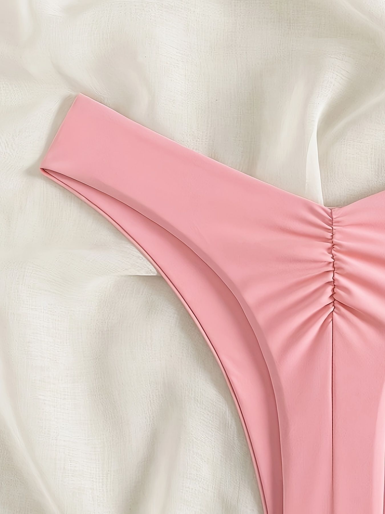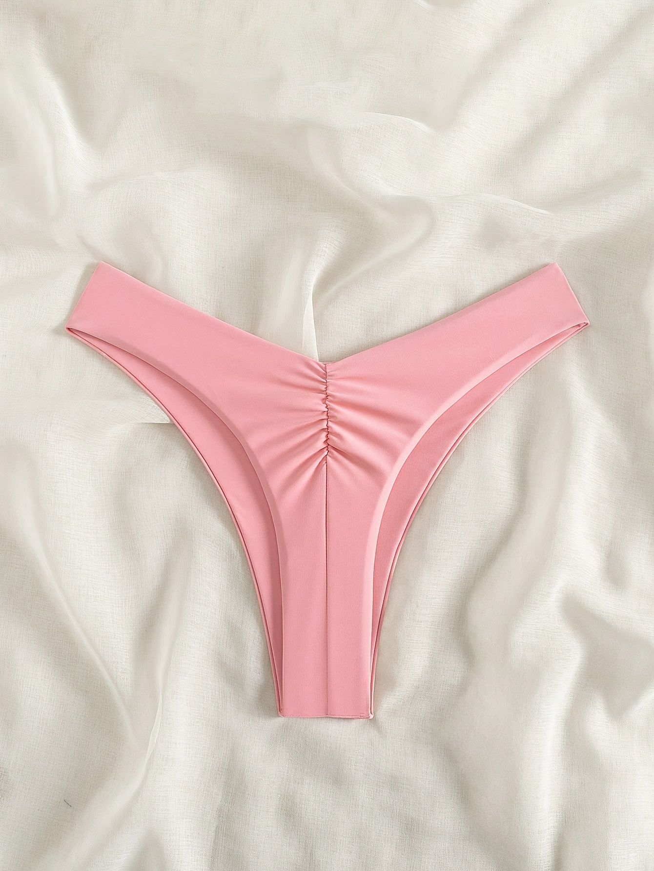 유럽과 미국의 해외 전자상거래 신상 여성 수영복 섹시한 주름 디자인의 끈 팬티 핑크색 소녀용 보수적인 안전 팬츠 수영복스토어 가기