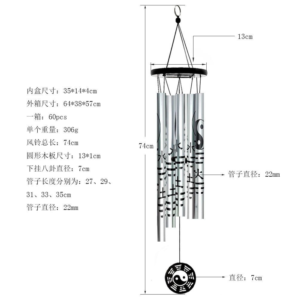 중국 전통 요소가 담긴 팔괘 금속 장식품, 가정용 발코니 야외용 금목수화토 풍경종 장식스토어 가기