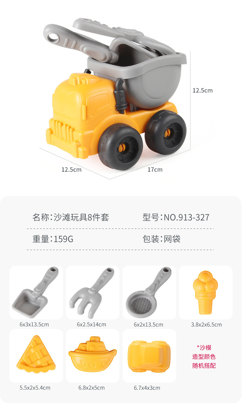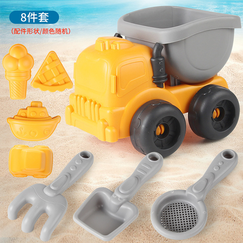 • 913-327 해변 노란색 덤프 트럭 8 피스 세트 159g