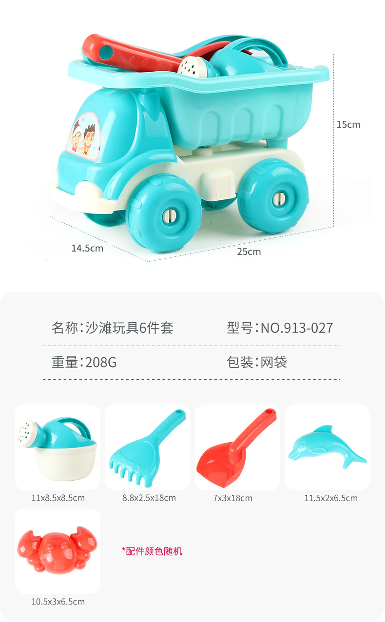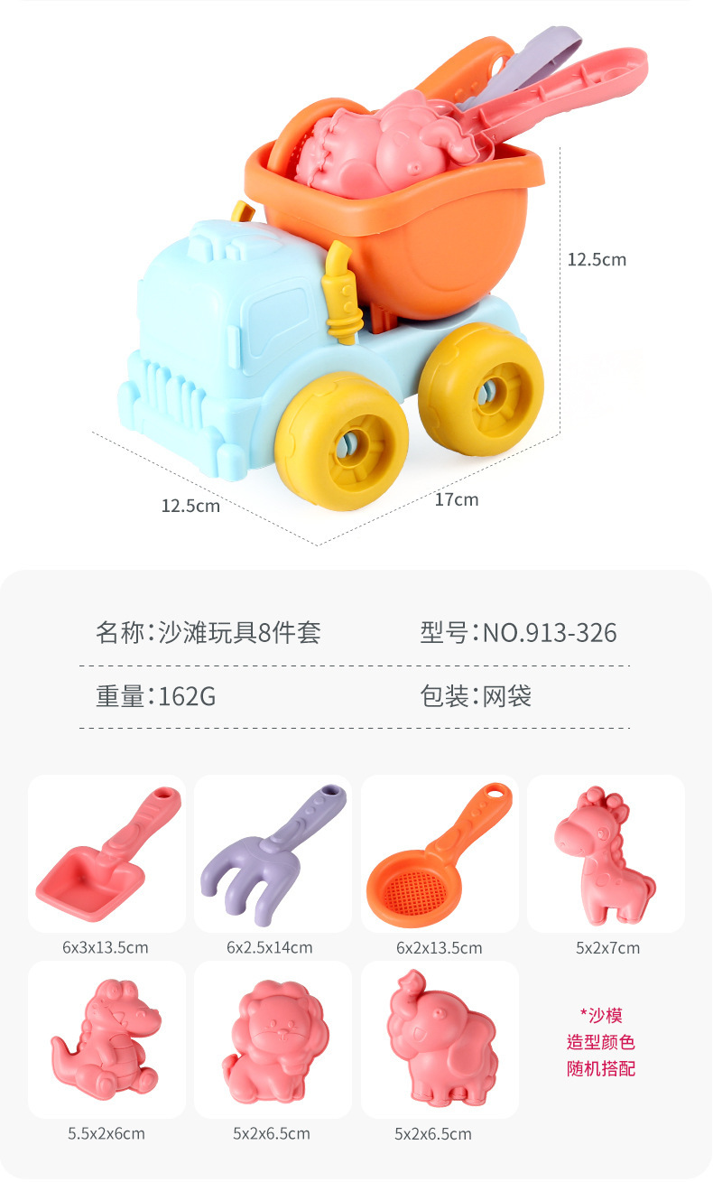 • 913-326 해변 블루 덤프 트럭 8 피스 세트 162g