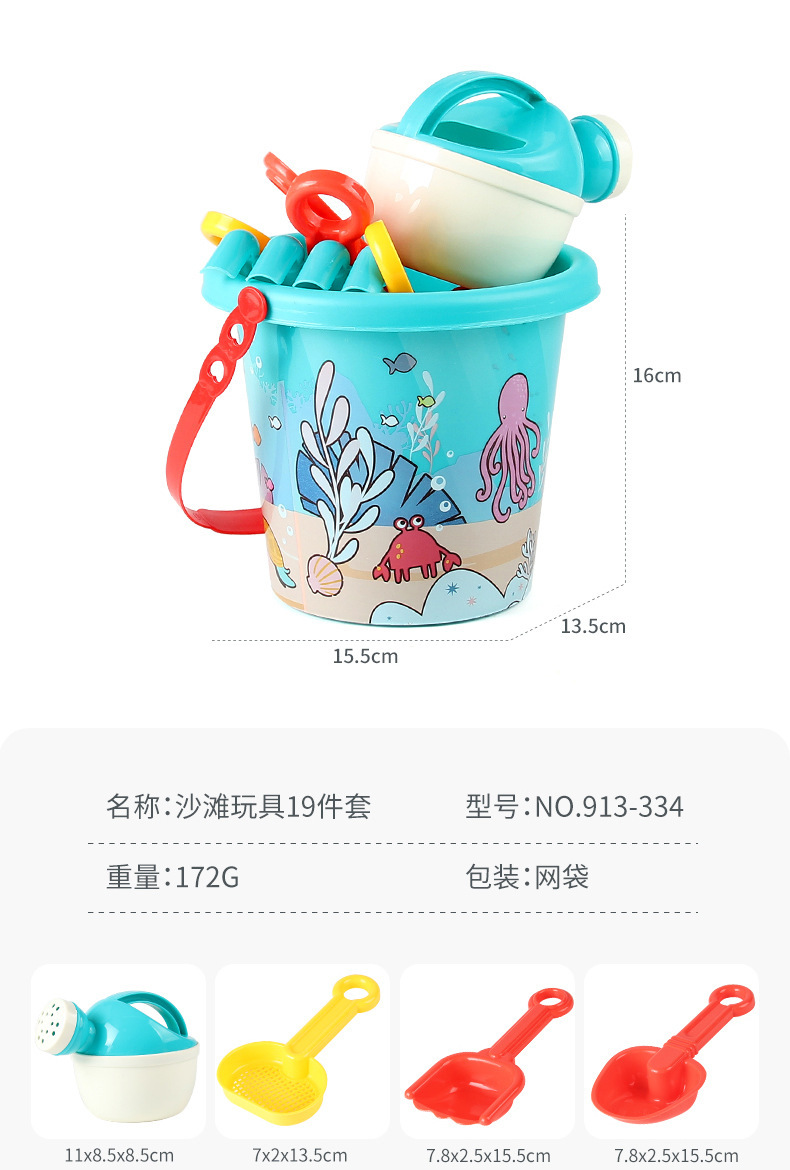 • 913-334 비치 버킷 장난감 19 조각 세트 172g
