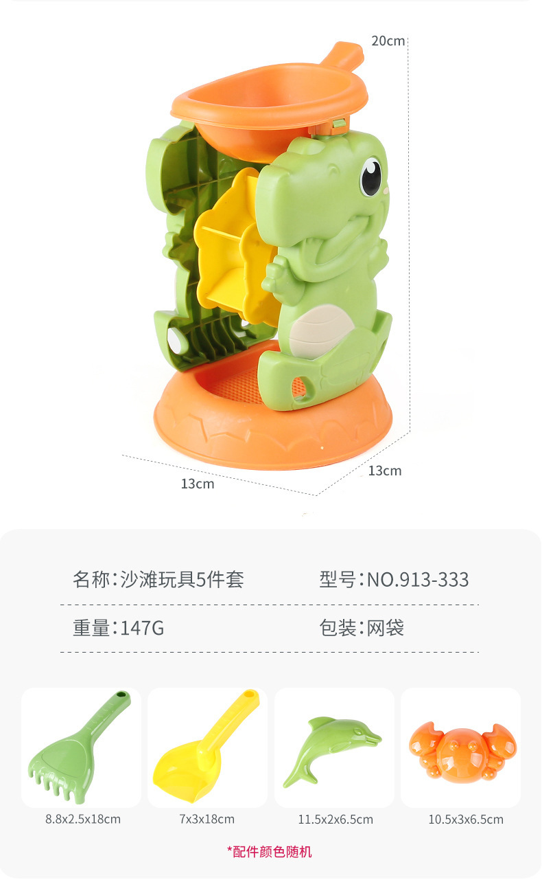 • 913-333 해변 공룡 모래 시계 장난감 5 피스 세트 147g