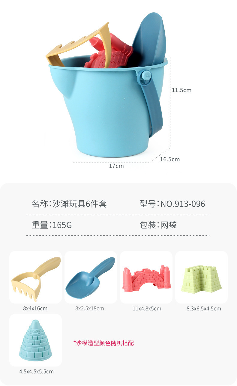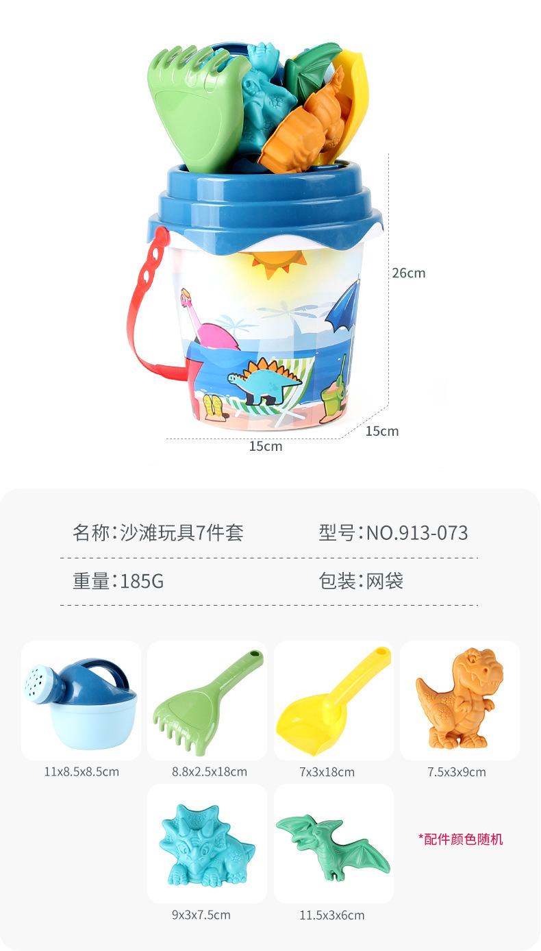 • 913-073 비치 비치 버킷 장난감 7 피스 세트 185g