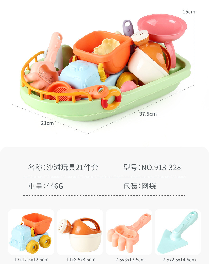 • 913-328 비치 보트 장난감 21 피스 세트 446g