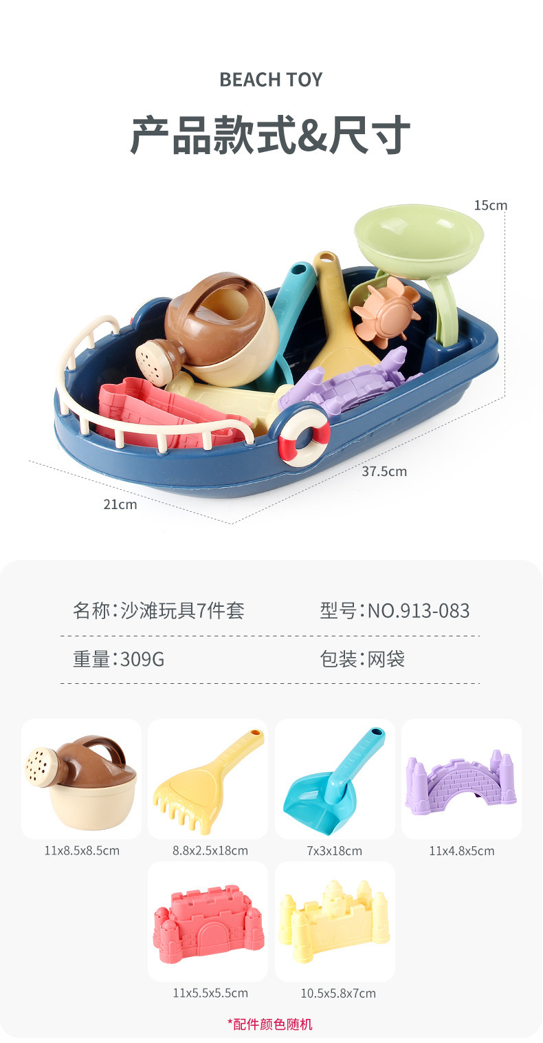• 913-083 비치 보트 장난감 7 피스 세트 309g