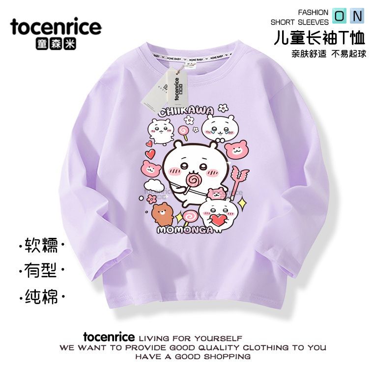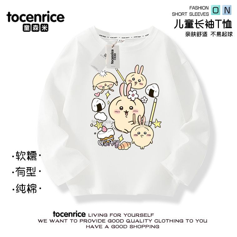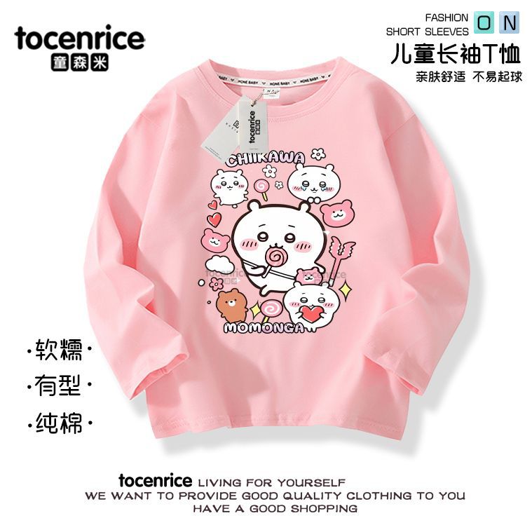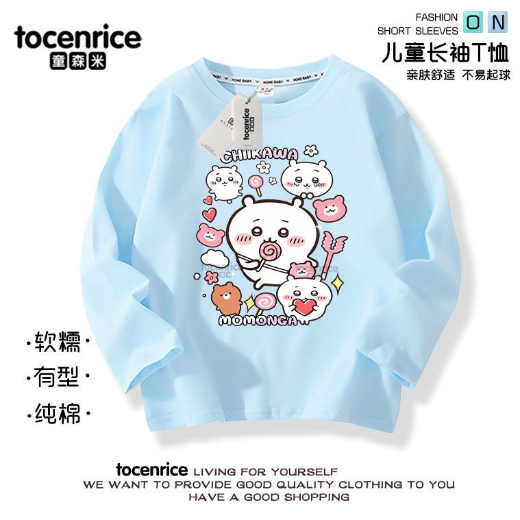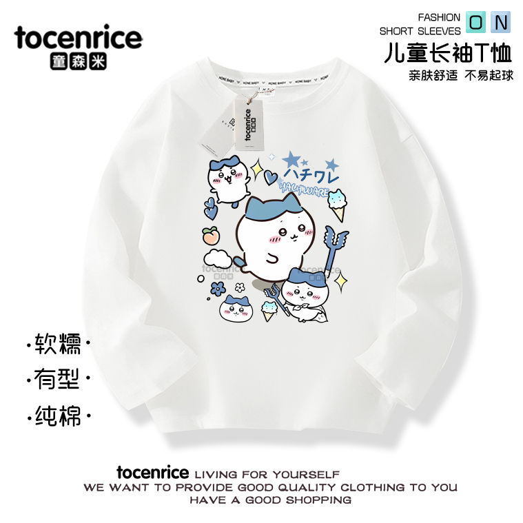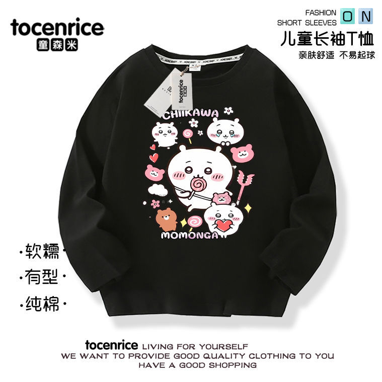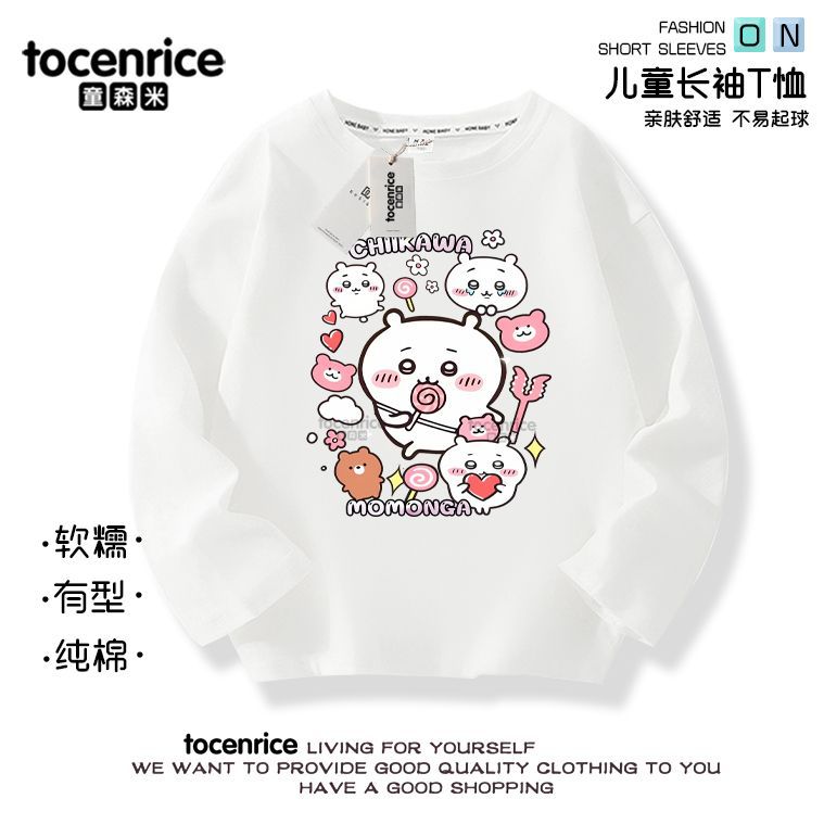 Chiikawa Jiykawa 어린이 코튼 티셔츠 소녀 중 · 빅 키즈 긴 소매 라운드 넥 탑 우 사치스토어 가기
