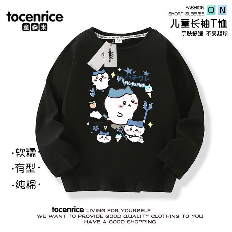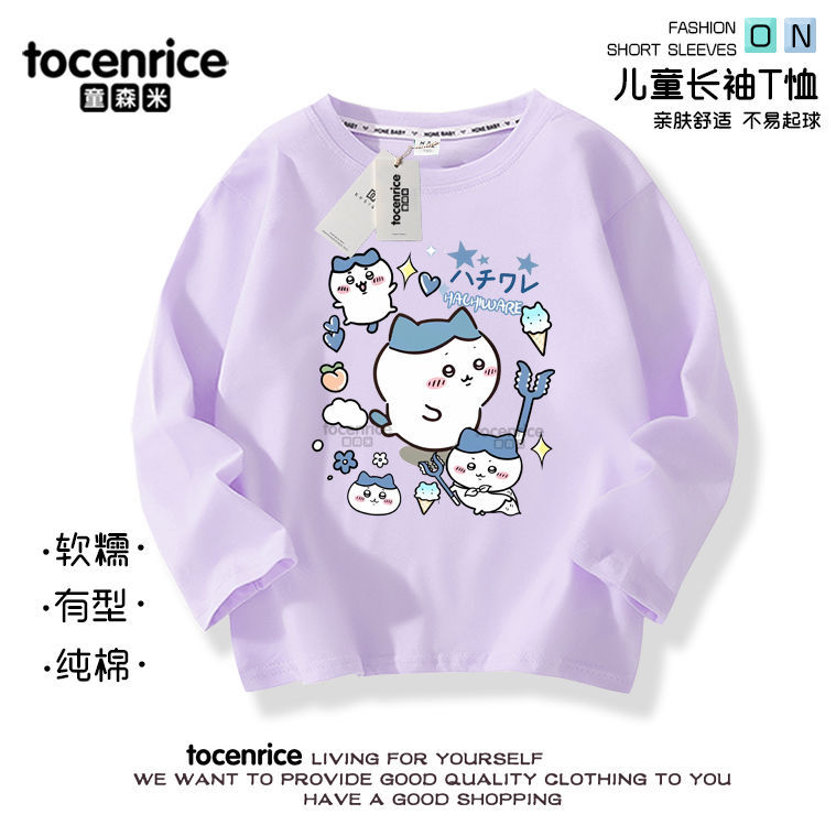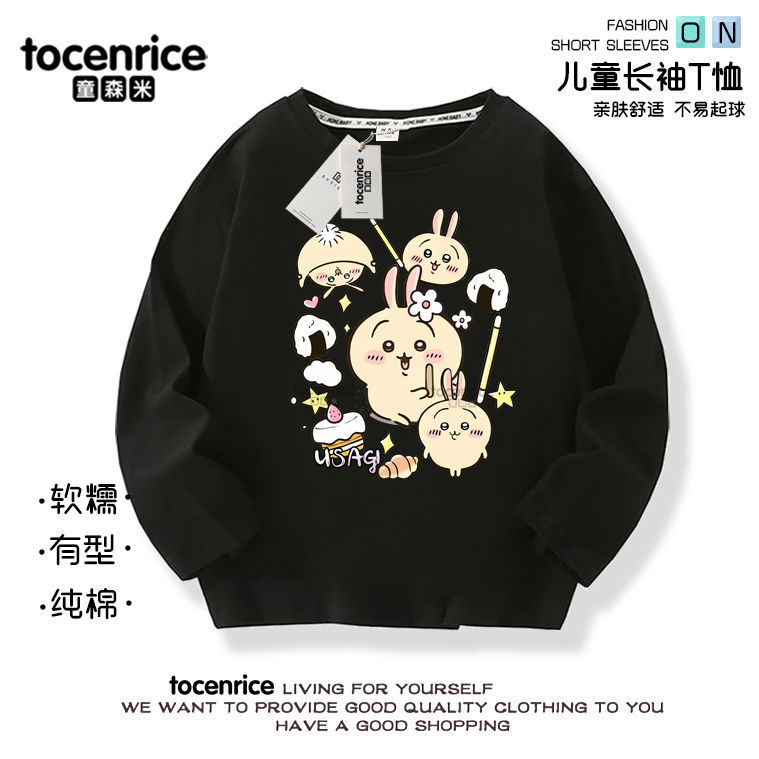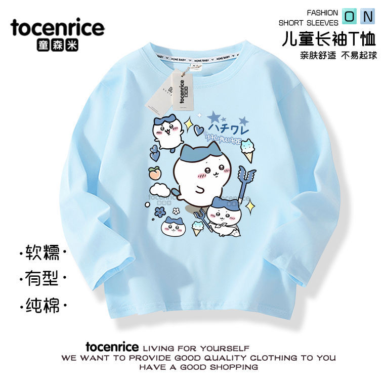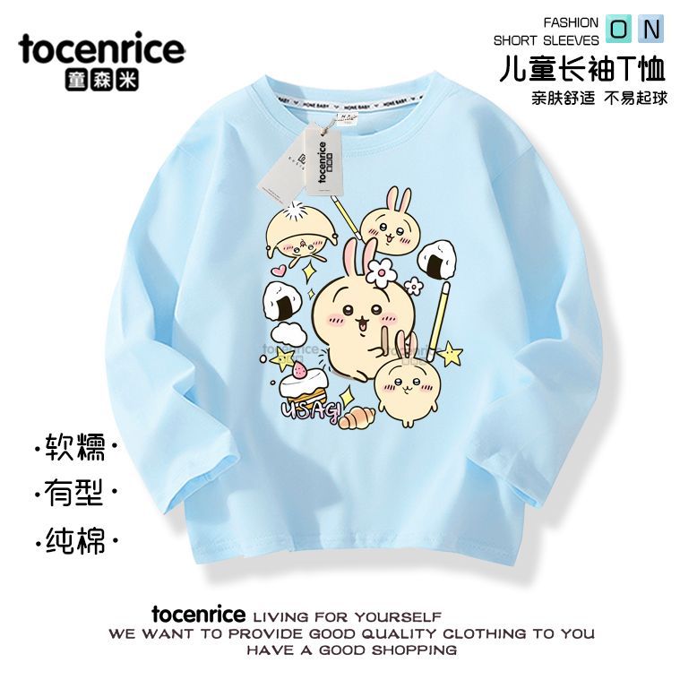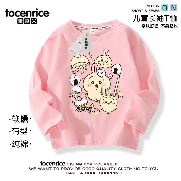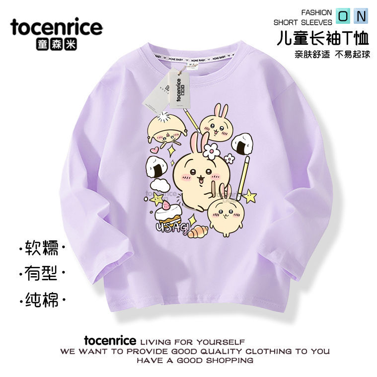 Chiikawa Jiykawa 어린이 코튼 티셔츠 소녀 중 · 빅 키즈 긴 소매 라운드 넥 탑 우 사치스토어 가기