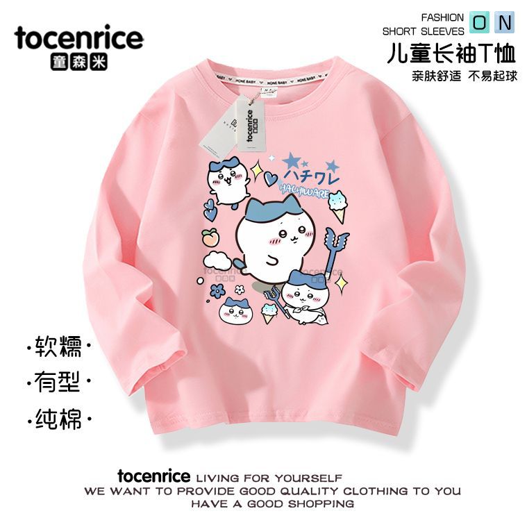 Chiikawa Jiykawa 어린이 코튼 티셔츠 소녀 중 · 빅 키즈 긴 소매 라운드 넥 탑 우 사치