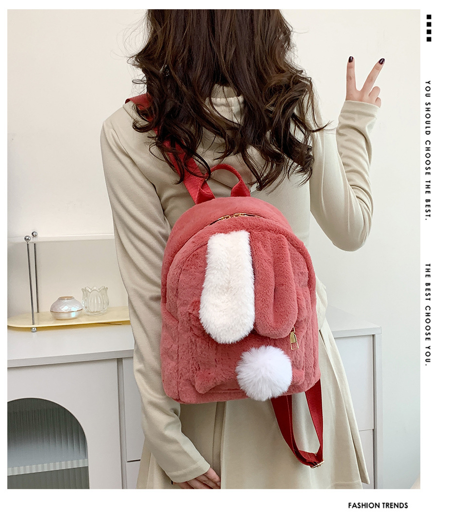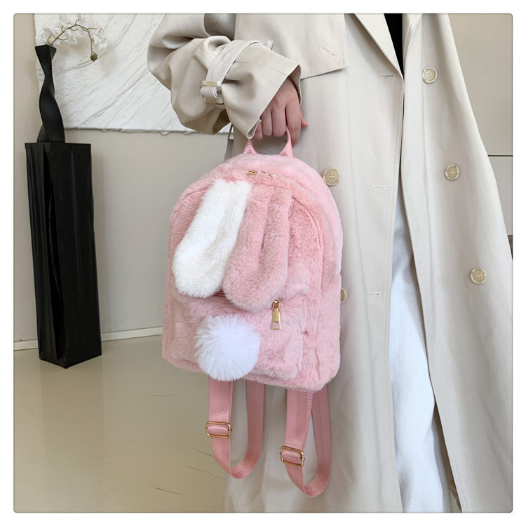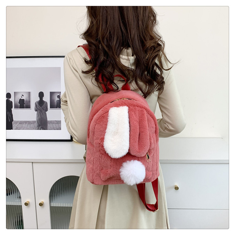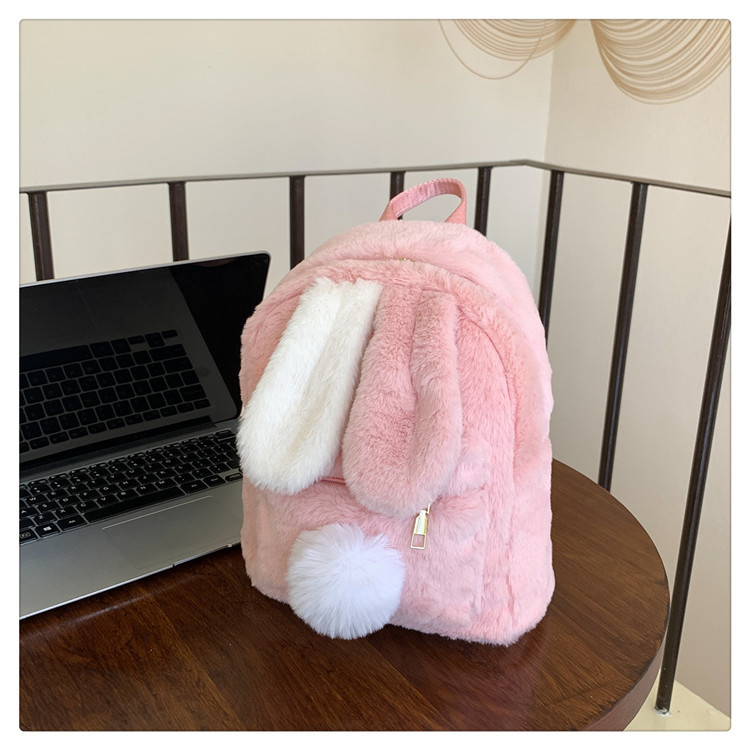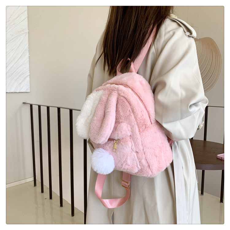 2024 새로운 패션 독특한 2 색 토끼 귀 봉제 가방 여성 일본 스타일 귀여운 소녀 여행 배낭