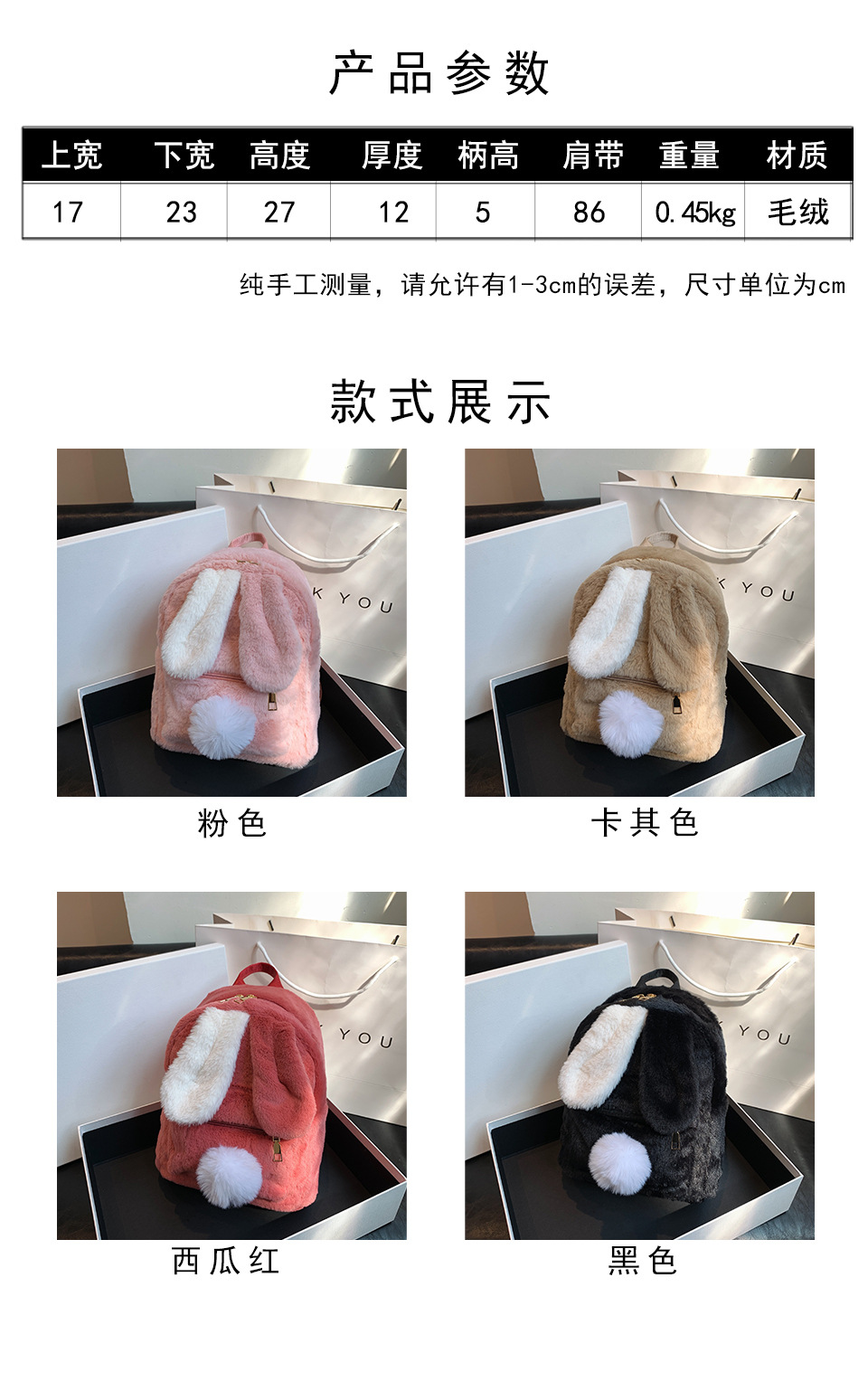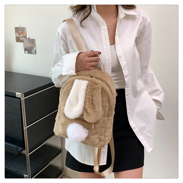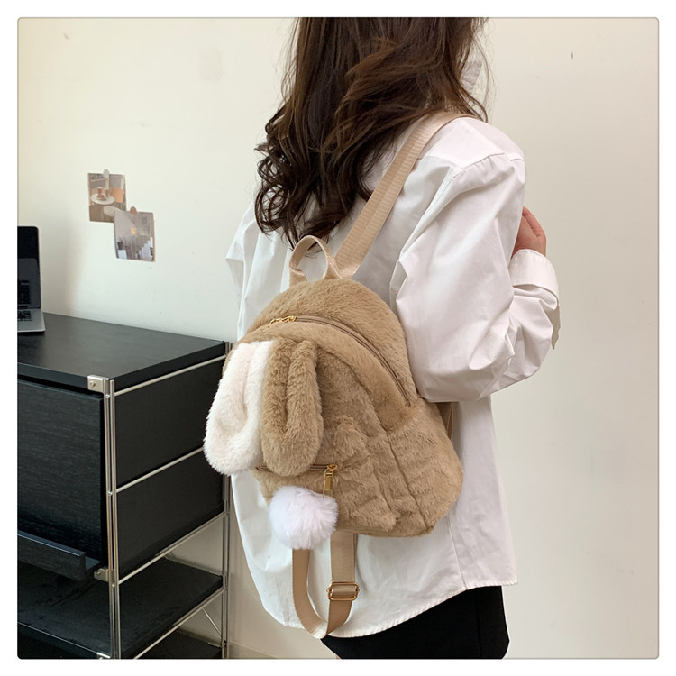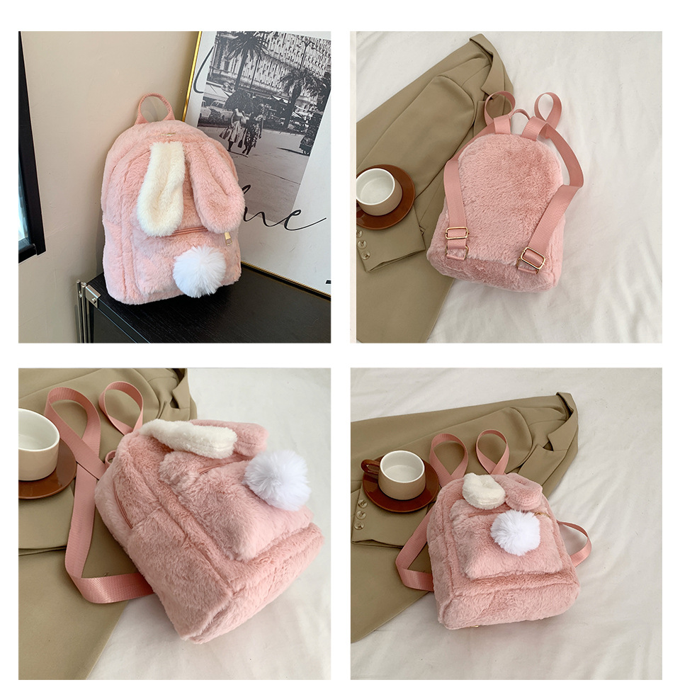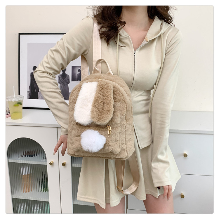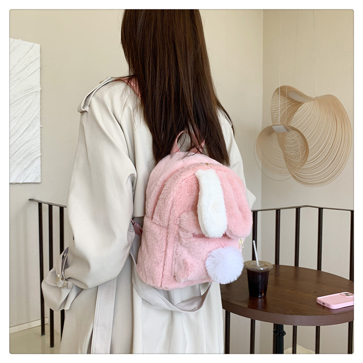 2024 새로운 패션 독특한 2 색 토끼 귀 봉제 가방 여성 일본 스타일 귀여운 소녀 여행 배낭스토어 가기